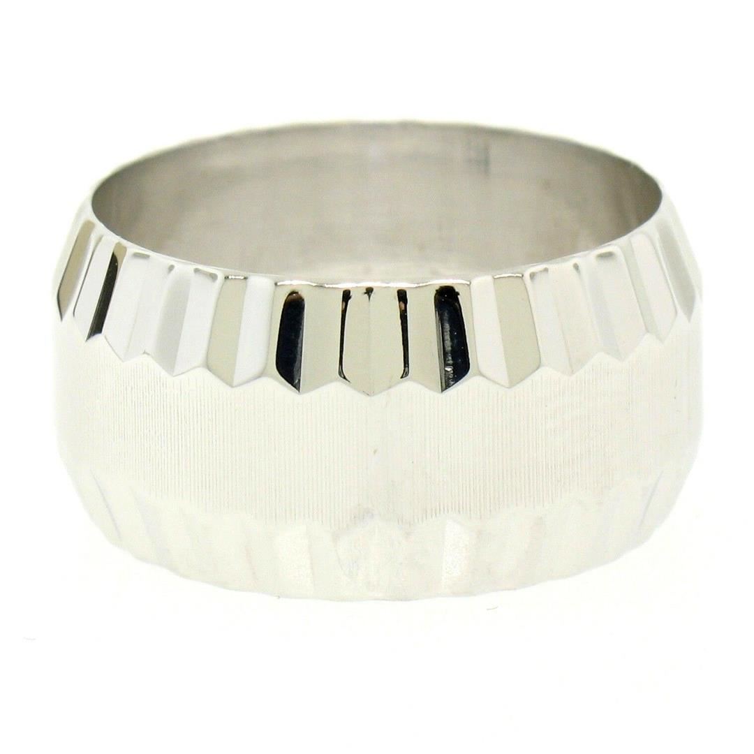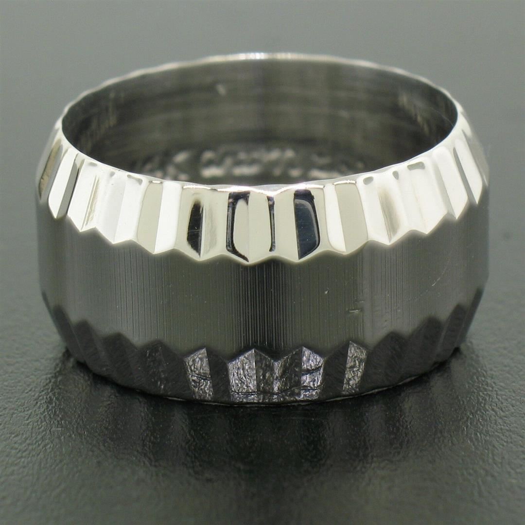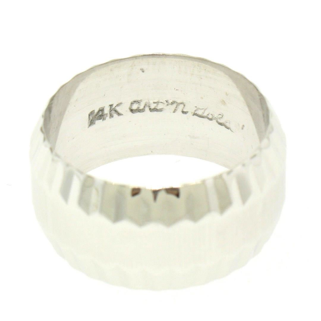One Vintage 14K Solid White Gold Textured & Grooved 10mm Wide Wedding Band Ring Size 6. Item Details: Material: 14K Solid White Gold, Weight: 7.3 Grams, Ring Size: 6.0 (We can enlarge this ring half a size if desired), Ring Width: 9.93mm, Ring Height: 1.34mm rise off the finger, Condition: Vintage piece. Excellent condition!, Signature: 14K Art 'N Gold,