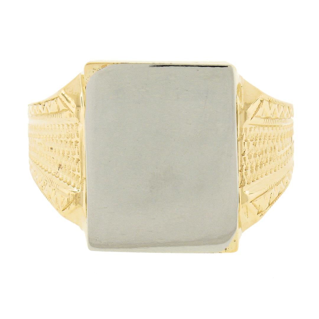 A vintage solid 14k yellow & white gold ring. The ring is size 7.0, weighs a total of 3.92 grams, and measures 13.50mm wide.