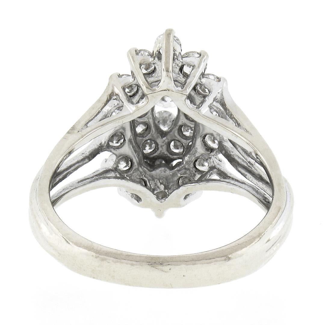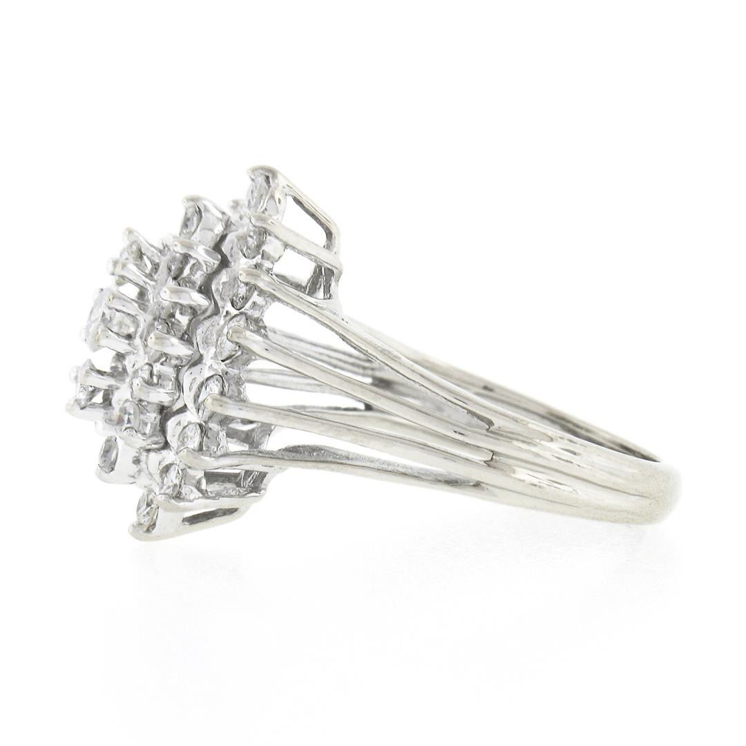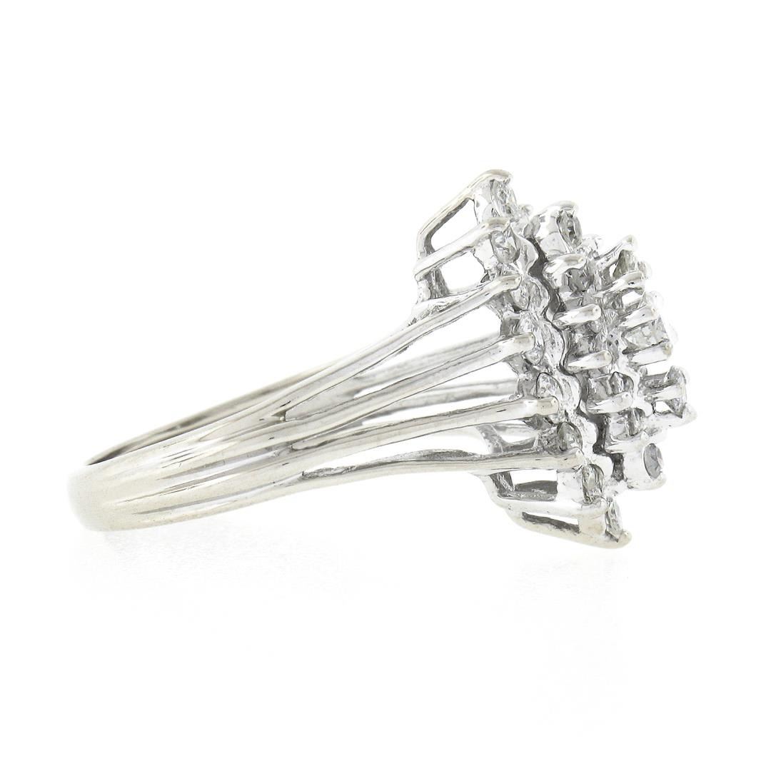A vintage solid 14k white gold ring, with 29 single & round brilliant cut natural diamonds (F/G - SI1/SI2 ; 1.35ct). The ring is size 6.5, weighs a total of 4.42 grams, and measures 17.60mm wide.