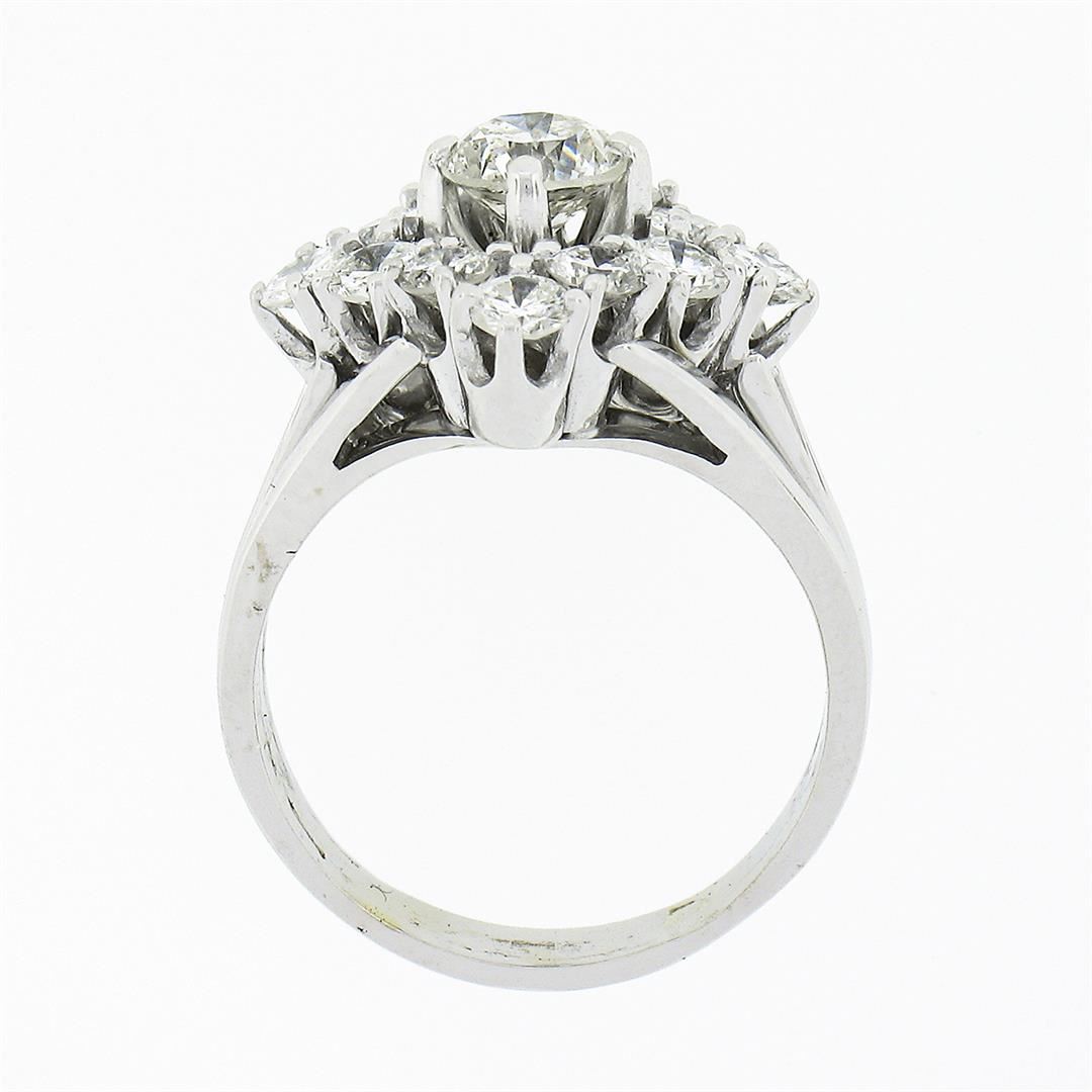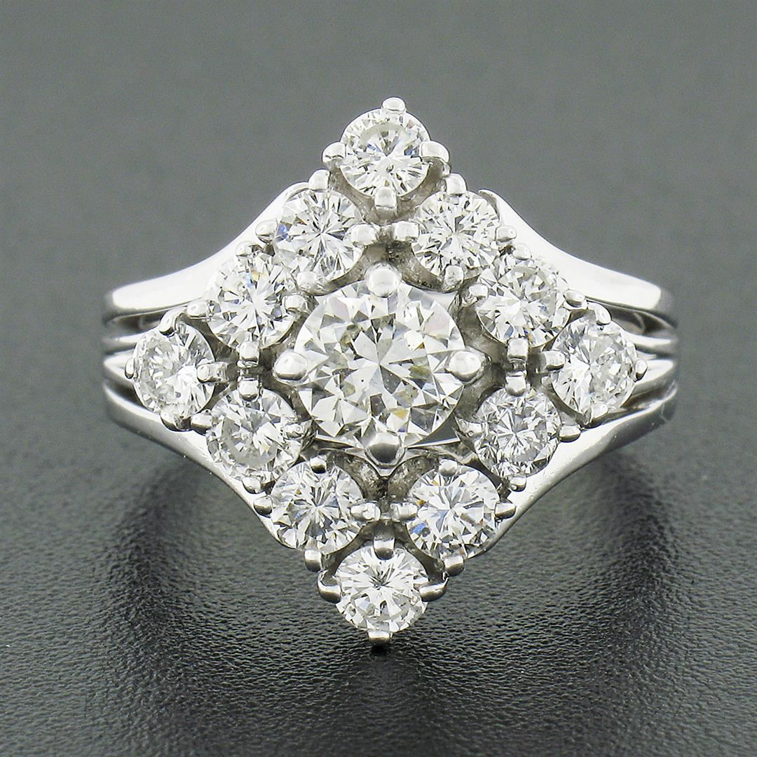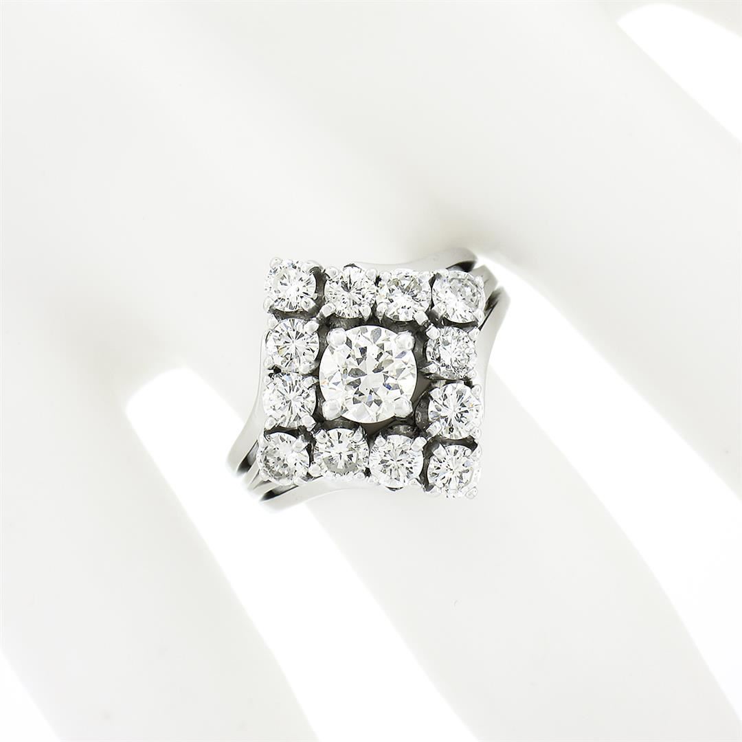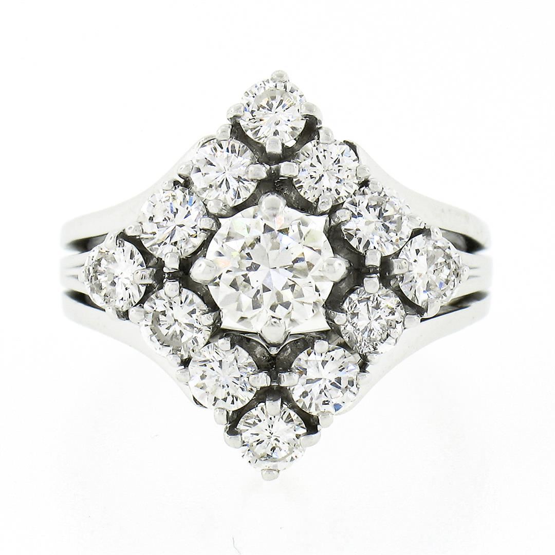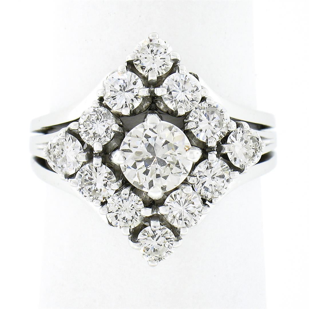 A solid 14k white gold ring, with 1 old transitional cut natural diamond (H - VS2 ; 0.60ct), and 12 old transitional cut natural diamonds (H/I - VS1-SI1 ; 1.44ctw). The ring is size 6.0, weighs a total of 6.93 grams, and measures 17.35mm wide.