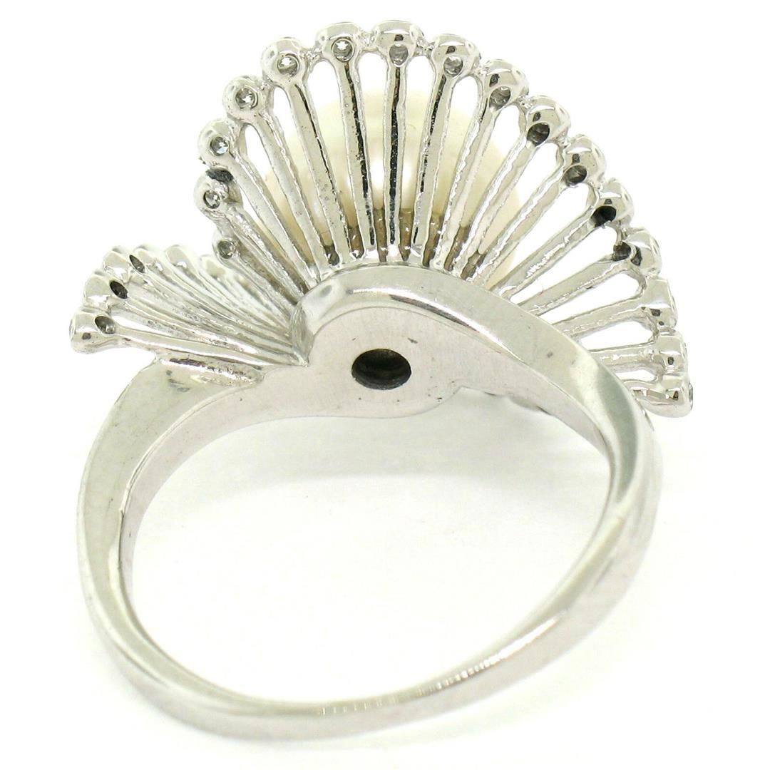 One Vintage 14K White Gold 8.5mm Pearl & 0.50ctw Diamond 2 Wave Bypass Cocktail Ring. Item Details: Material: 14K Solid White Gold, Weight: 4.55 Grams, Stone(s): (1) Natural Genuine Pearl - Round Shape - Ivory Color w/ Beautiful Luster and Gorgeous Pink Overtones - 8.5mm (approx.), (32) Natural Genuine Diamonds - Round Single Cut - Bezel Set - F/G Color - VS1 Clarity - 0.50ctw (approx.), Ring Size: 4.5 , Ring Width: 16.20mm (at its widest), 2.03mm (the shank), Ring Height: 11.65mm rise off the finger, Condition: Vintage piece. Like new condition!