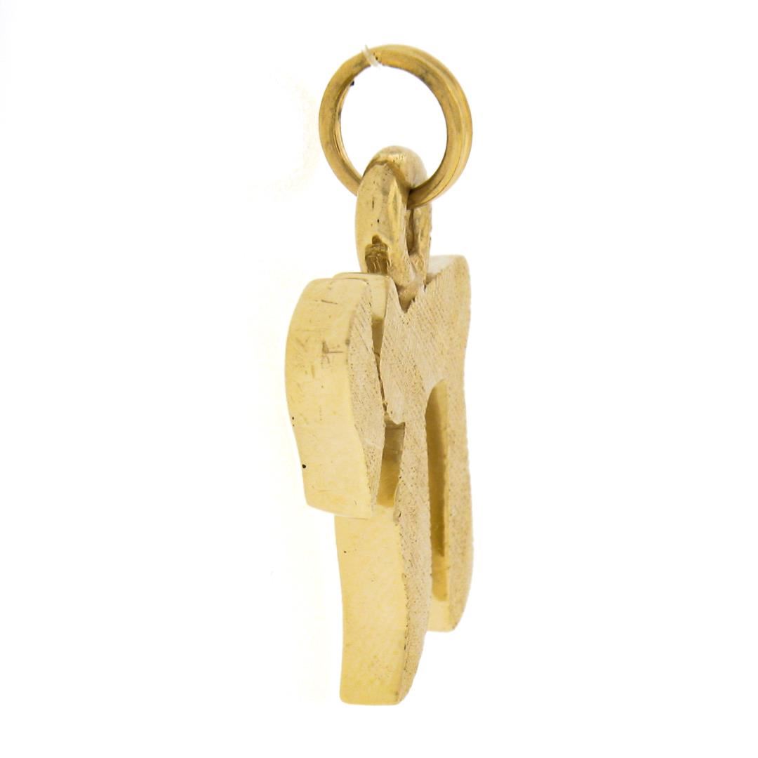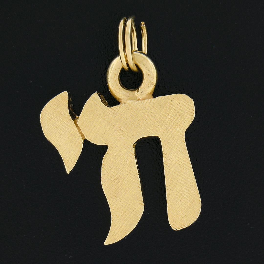 A vintage solid 14k yellow gold chai charm pendant. The pendant weighs a total of 6.05 grams, measures 25.1x17.4mm including the bail, and the inside of the bail measures 4.8mm.