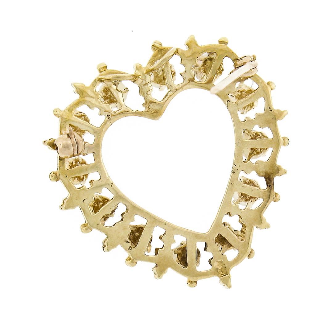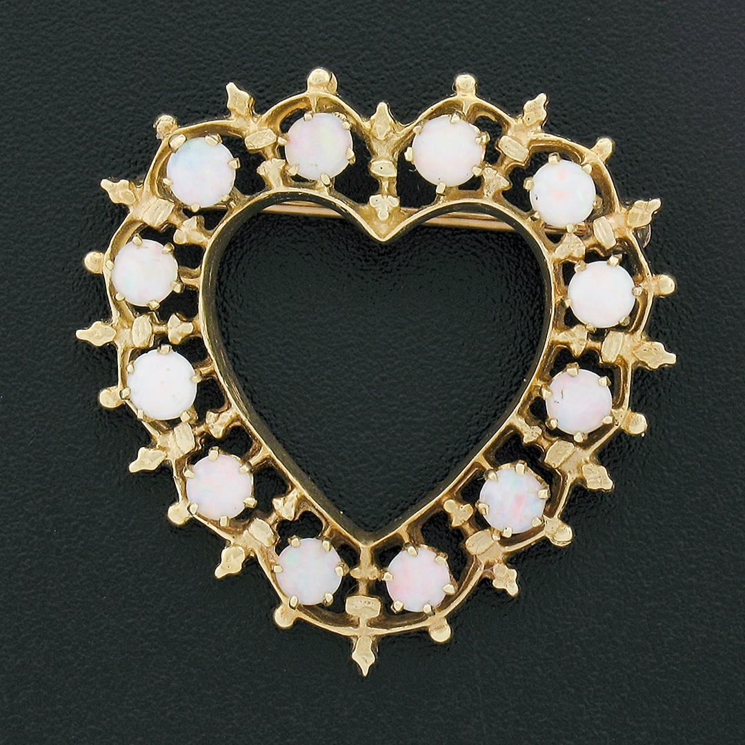 A vintage solid 14k yellow gold heat pin brooch pendant, with 12 round cabochon cut natural opals (3.0-3.5mm each). Measures 29.50x30mm and weighs a total of 6.20 grams.