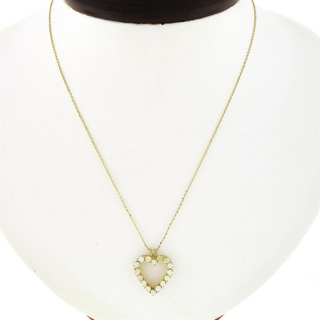Vintage 14K Yellow Gold Round Cabochon Prong Opal Open Heart Pendant Necklace