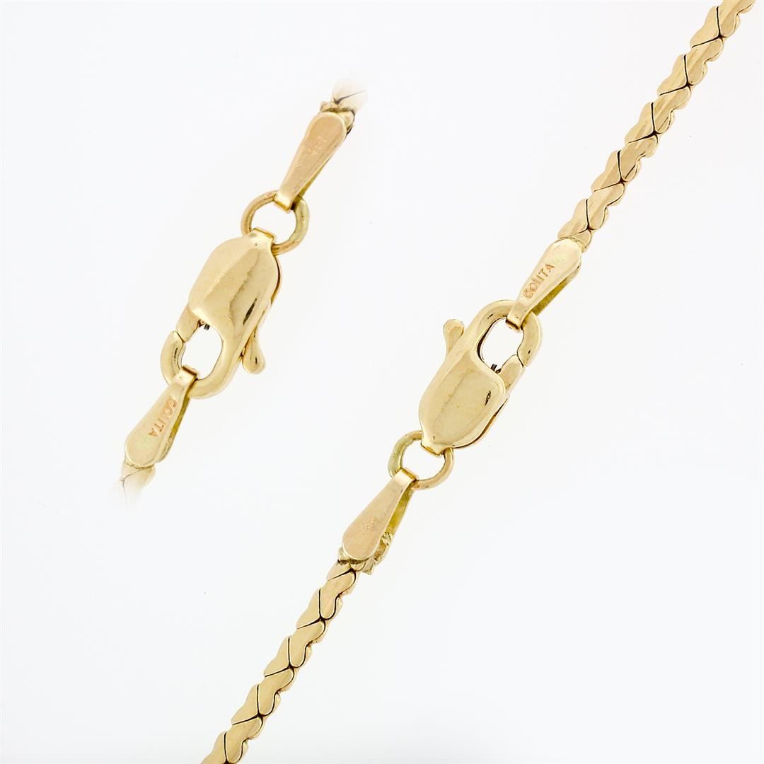 A vintage solid 14k yellow gold statement necklace, with 17 round cut natural sapphire (1.60ctw), and 16 round brilliant cut natural diamonds (F/G - VS1/VS2; 0.68ctw). 16 inch heart shaped serpentine style link chain, 17.50 grams total weight, pendant measures 147.05x51.22mm.