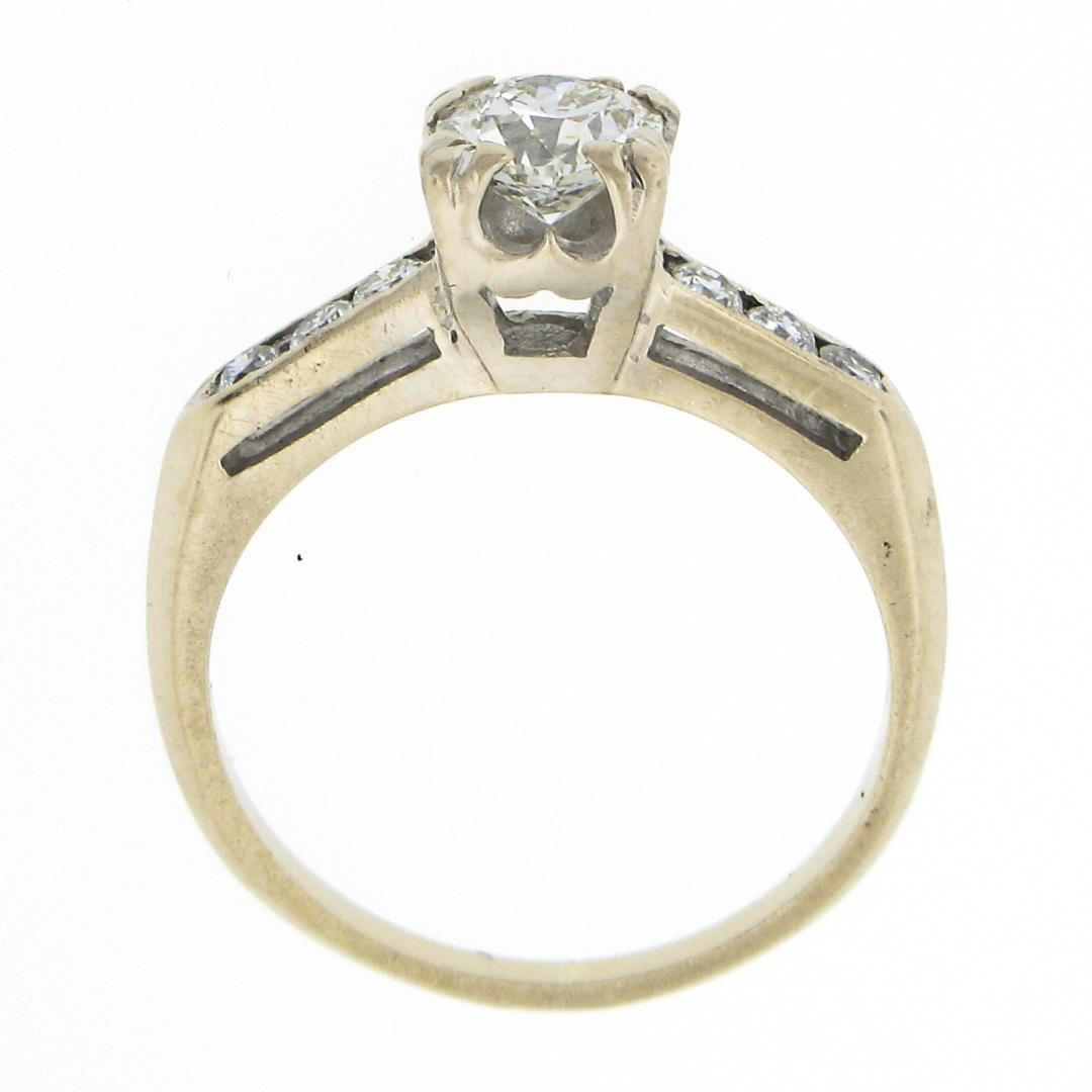 A vintage solid 14k yellow gold engagement ring, with 1 old european cut natural diamond (H - VS1 ; 0.55ct ), and 6 old single cut natural diamonds (G/H - VS1/VS2 ; 0.15ctw ). The ring is size 5.0, weighs a total of 2.26 grams, and measures 5.6mm wide.