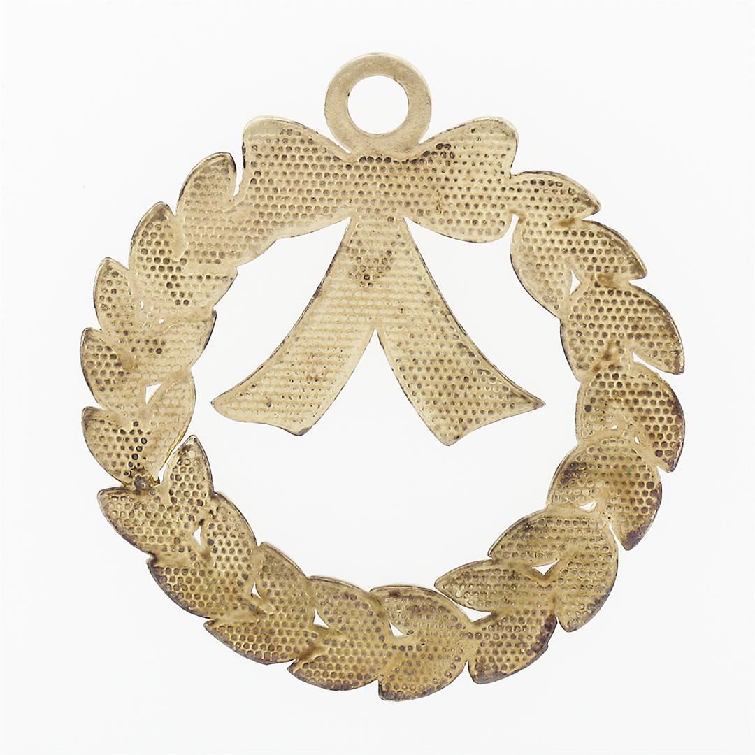 A vintage solid 14k yellow gold wreath pendant charm, with red & green enamel work. The pendant weighs a total of 1.7 grams, measures 23.55x21.3mm including the bail, and needs a jump ring.