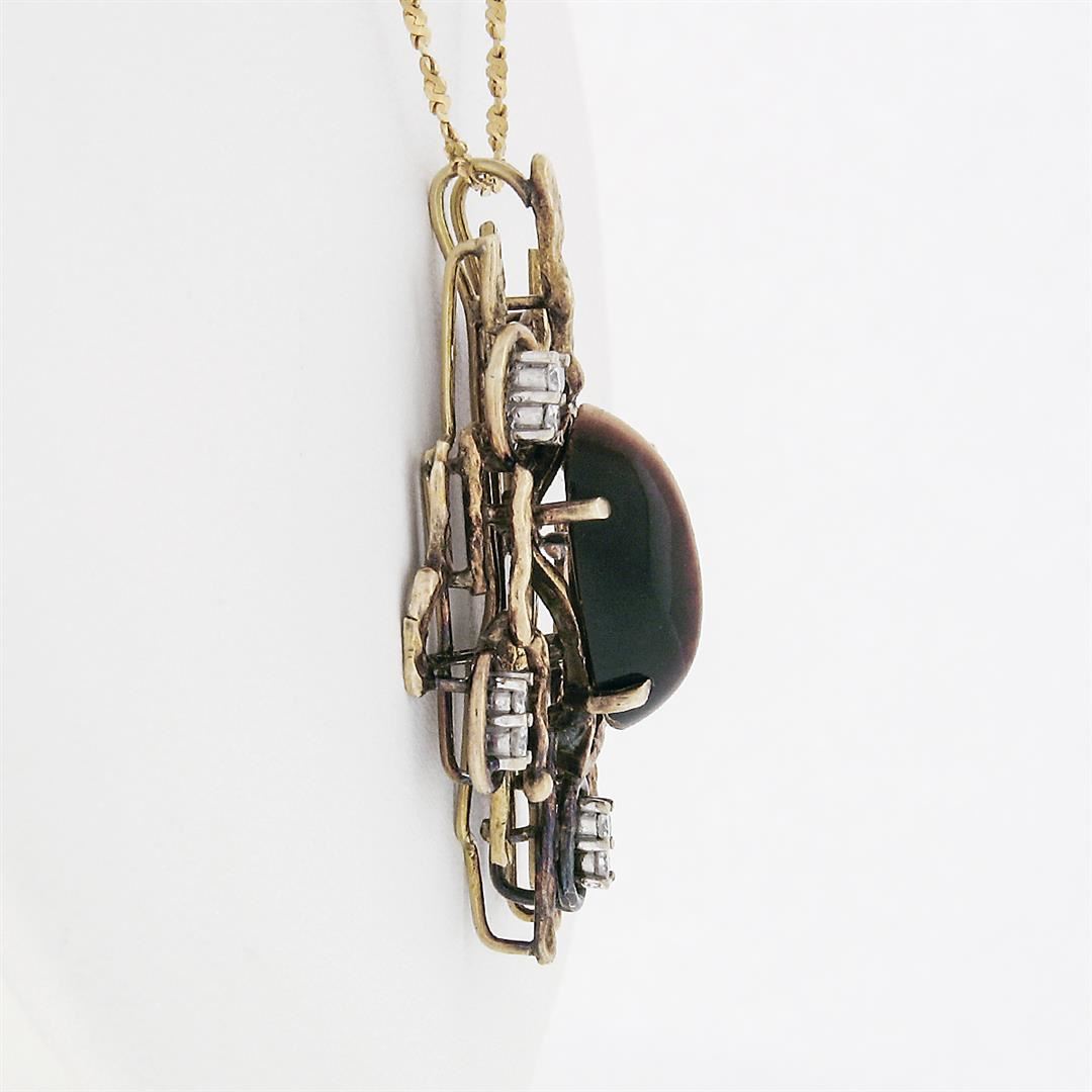 Vintage 14k Gold Tiger's Eye Diamond Accents Open Nugget Pendant 30  Necklace