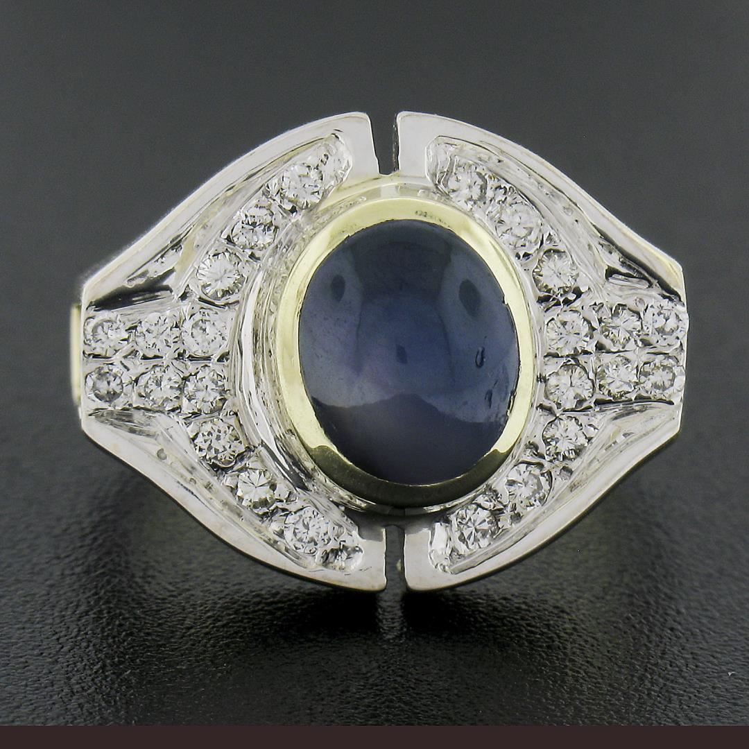 Vintage 14k TT Gold Cabochon Blue Star Sapphire w/ Round Diamond Cocktail Ring