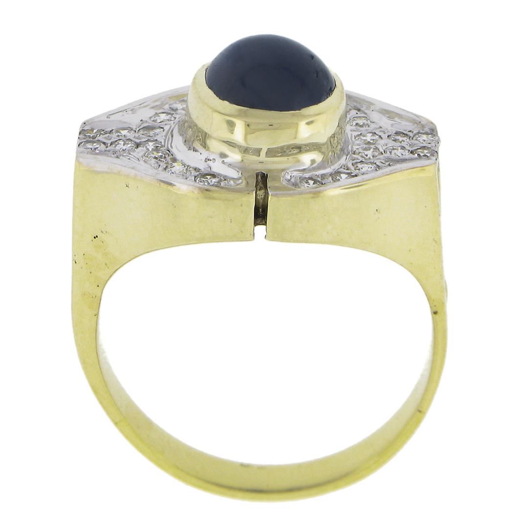 Vintage 14k TT Gold Cabochon Blue Star Sapphire w/ Round Diamond Cocktail Ring
