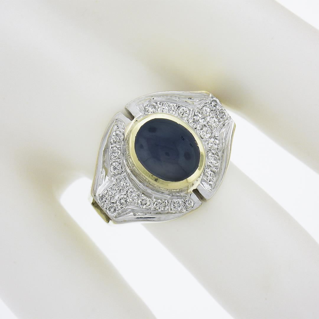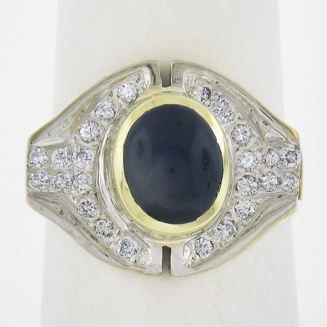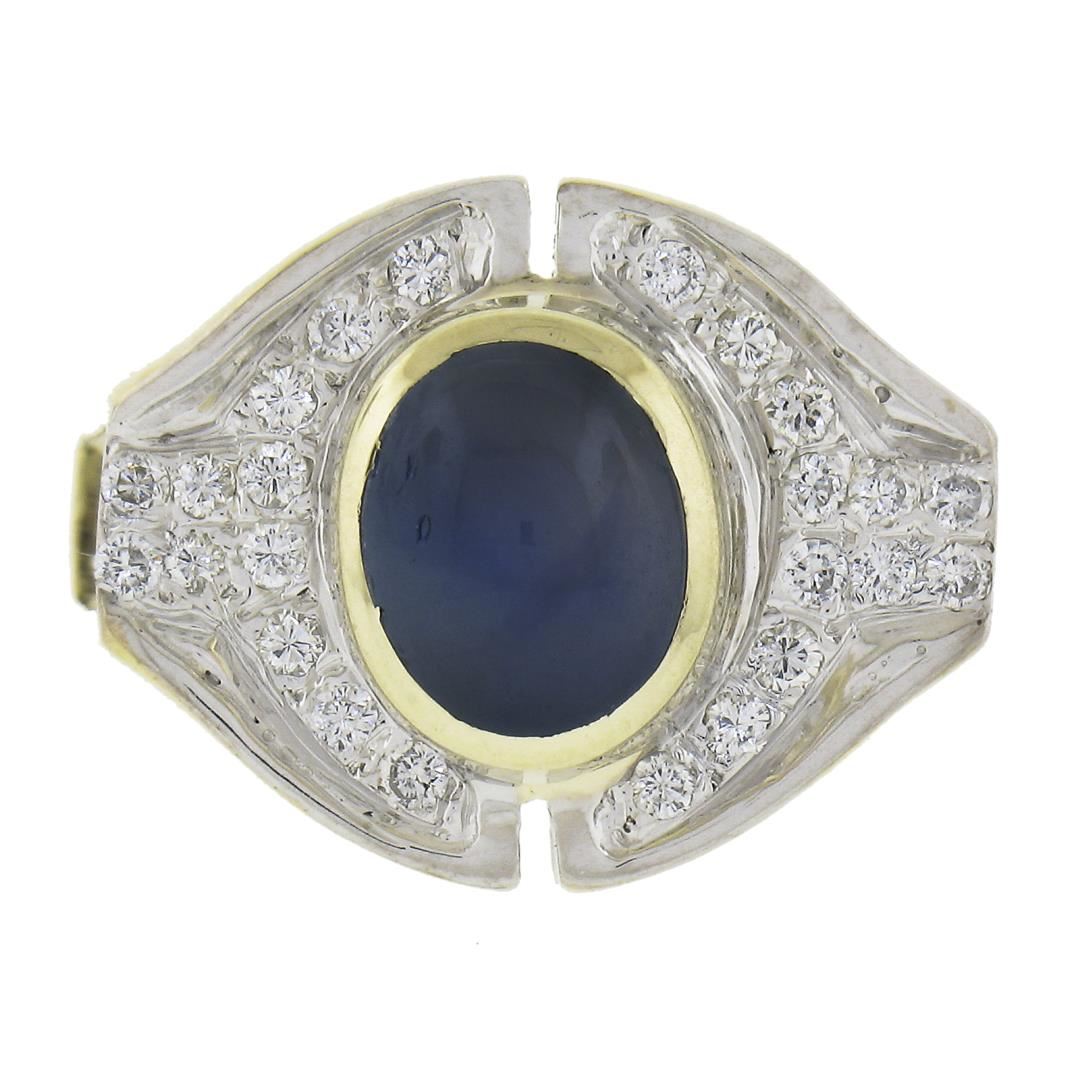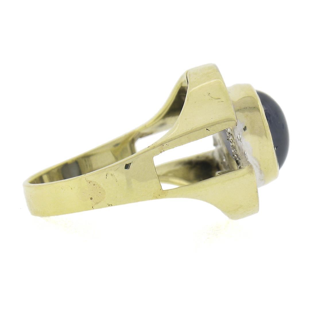Vintage 14k TT Gold Cabochon Blue Star Sapphire w/ Round Diamond Cocktail Ring