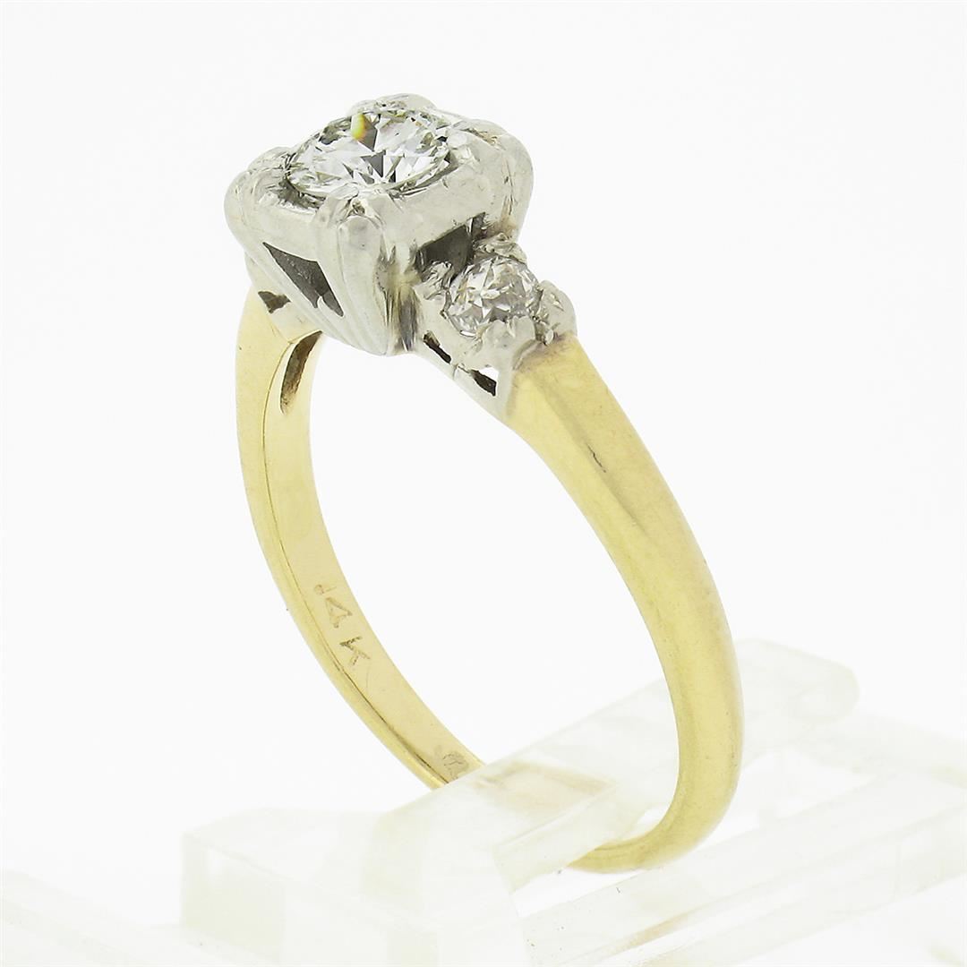 A solid 14k yellow & white gold engagement ring, with 3 old cut natural diamonds (H/I - VS2/SI1 ; 0.68ctw). The ring is size 6.5, weighs a total of 2.78 grams, and measures 6.80mm wide.