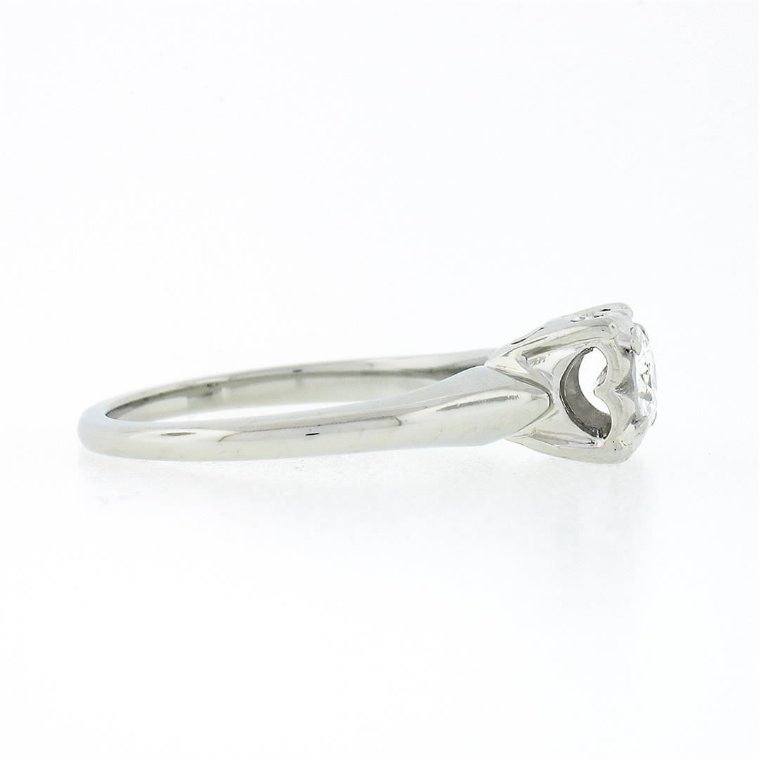 A vintage solid 14k white gold engagement ring, with 1 old transitional cut natural diamond (F - VS2 ; 0.32ct). The ring is size 5.0, weighs a total of 2.91 grams, and measures 5.9mm wide.