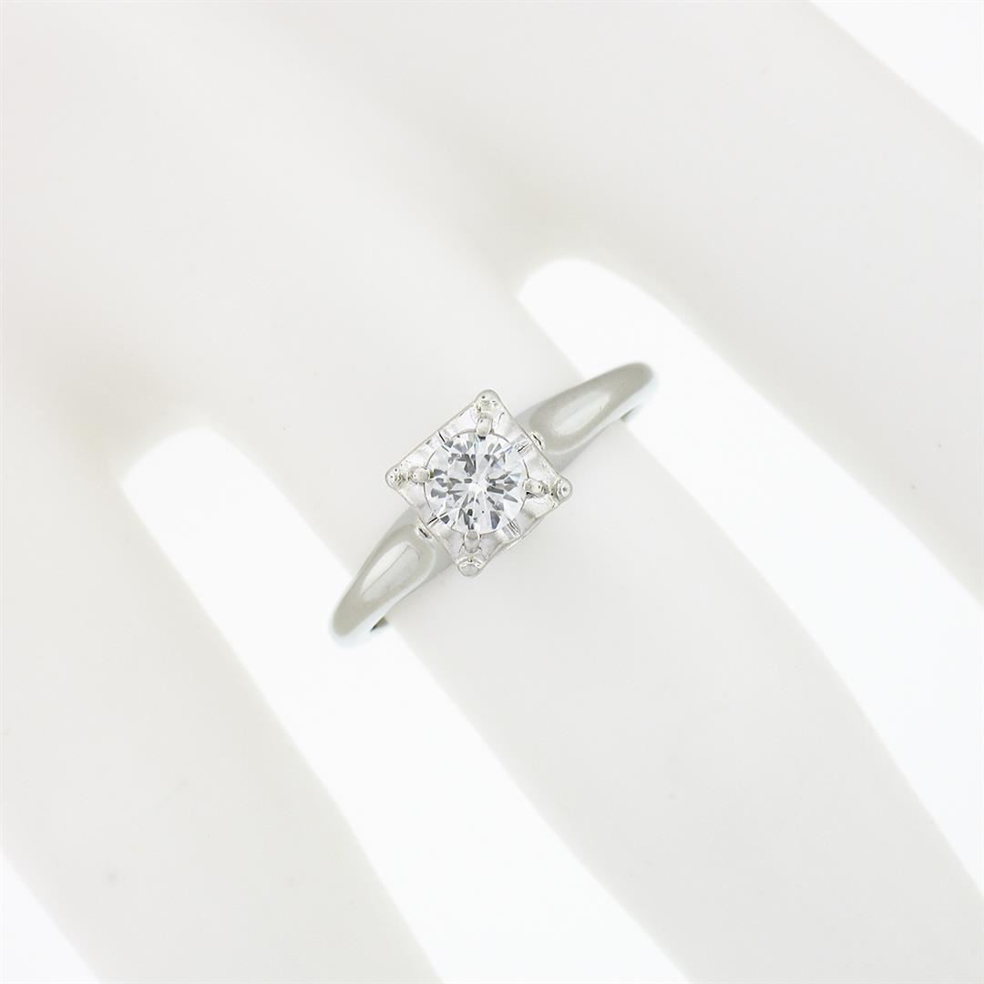 A vintage solid 14k white gold engagement ring, with 1 old transitional cut natural diamond (F - VS2 ; 0.32ct). The ring is size 5.0, weighs a total of 2.91 grams, and measures 5.9mm wide.