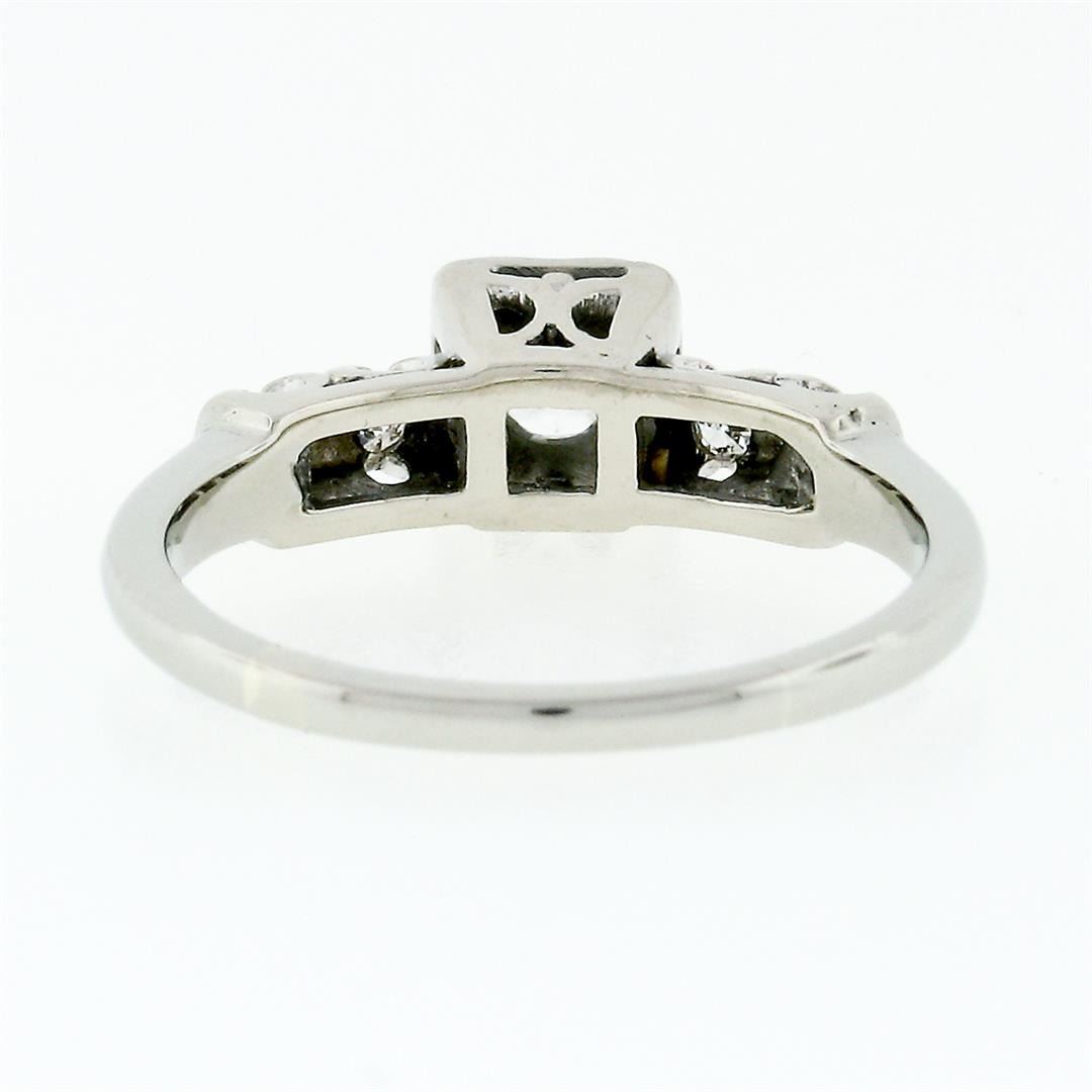 A vintage solid 14k white gold ring with 1 round transitional cut natural diamond (G - VS2; 0.27ct) and 4 round single cut natural diamonds (G/H - VS2; 0.10ctw). The ring is size 6.0, weighs a total of 2.90 grams, and measures 5.90mm wide.