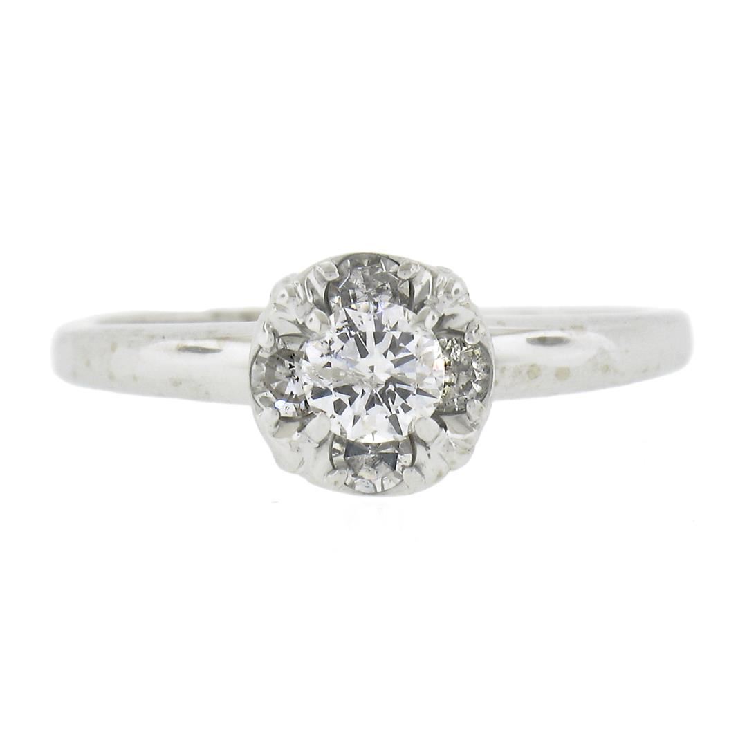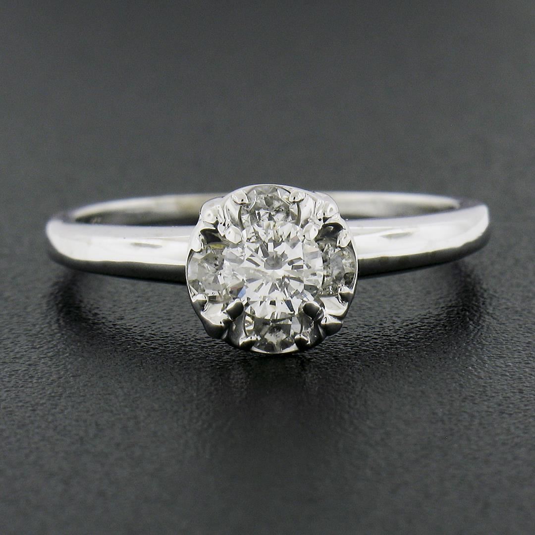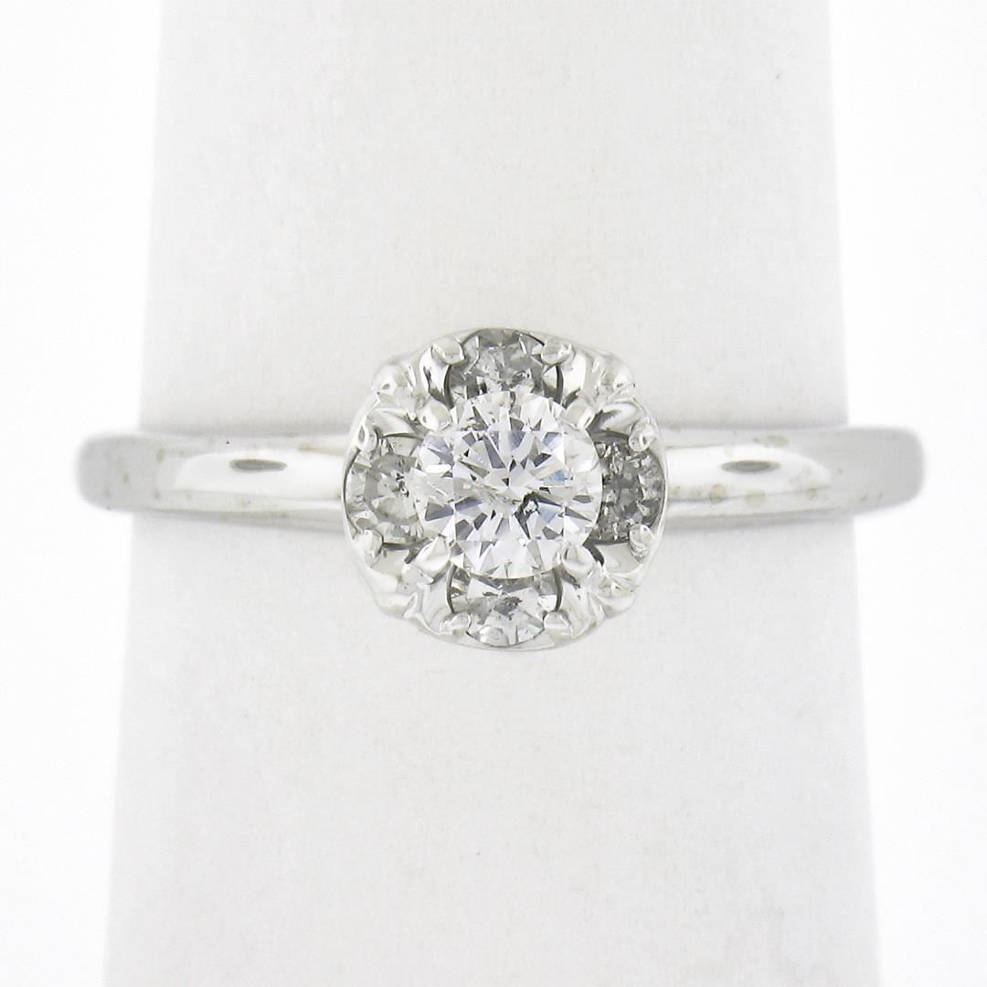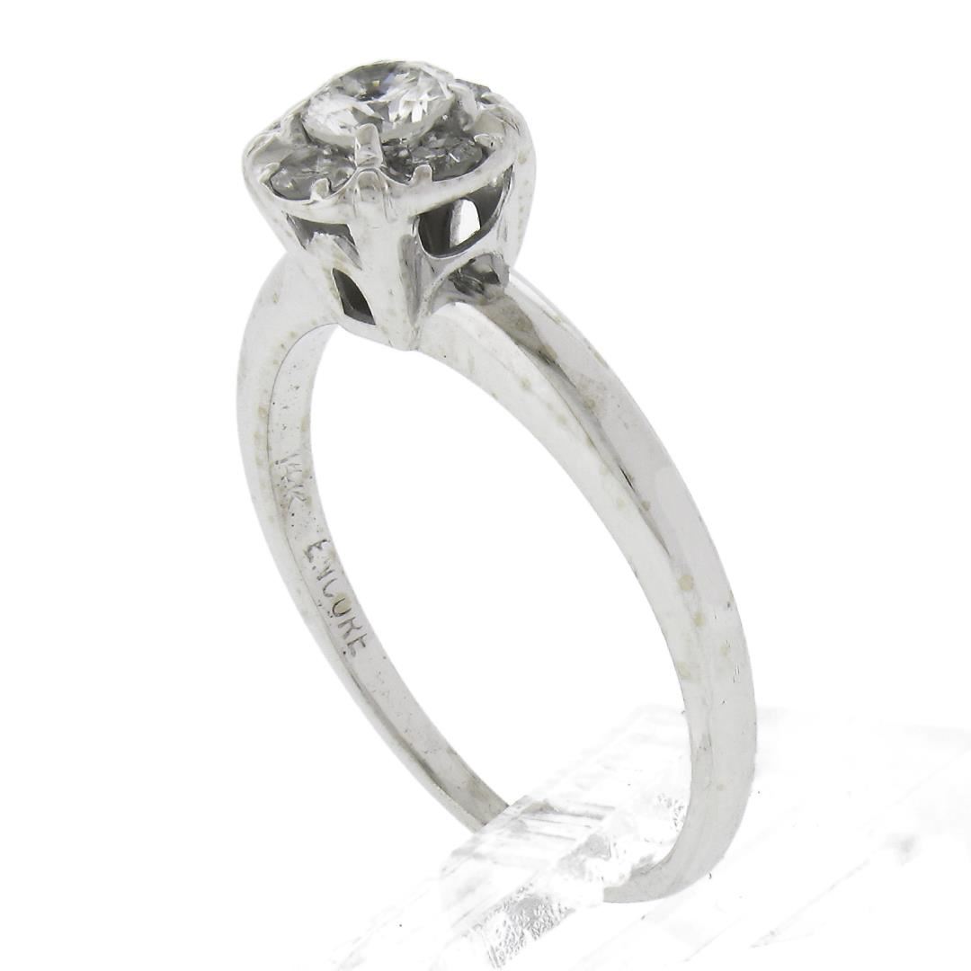 Vintage 14k White Gold 0.39ctw Diamond Cluster Solitaire Engagement Promise Ring