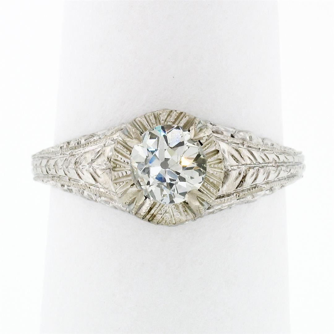 A vintage solid 14k white gold solitaire ring, with 1 old european cut natural diamond (I - I1 ; 0.68ct). The ring is size 6.5, weighs a total of 4.35 grams, and measures 8.28mm wide.