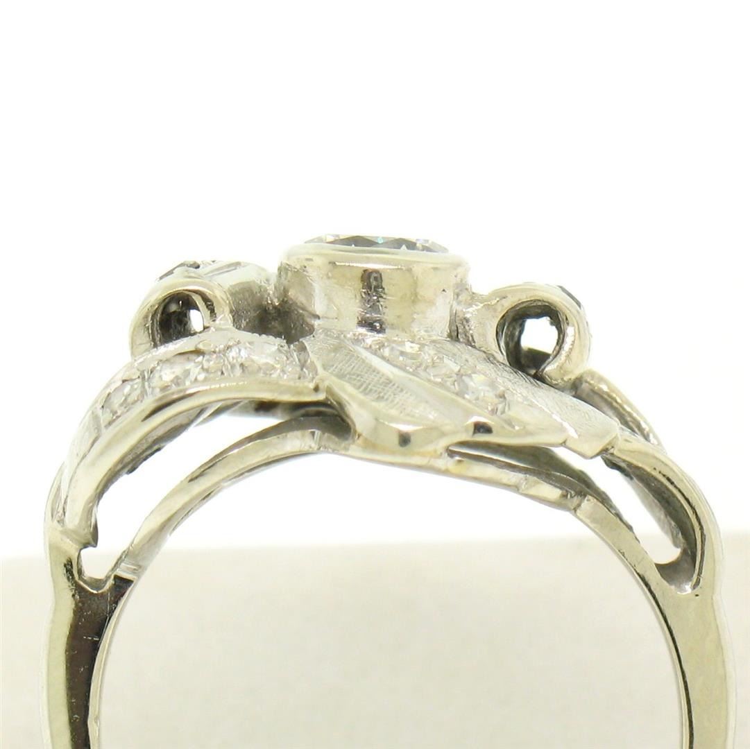 Vintage 14k White Gold 1.0ctw Round Brilliant & Single Cut Diamond Cocktail Ring. Please see photos and description for all available information. A vintage solid 14k whte gold cocktail ring, with 1 round brilliant cut natural diamond (G- VS1; 0.50ct), and 16 round brilliant cut natural diamonds (G/H - VS1/VS2; 0.50ctw). The ring is size 7.0, weighs a total of 5.2 grams, and measures 15.75mm wide.