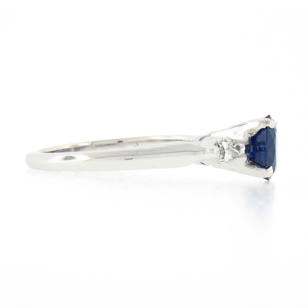 A vintage solid 14k white gold ring, with 1 GIA certified round brilliant cut natural sapphire (0.98ct ), and 2 marquise cut natural diamonds (G/H - VS1/VS2 ; 0.30ctw). The ring is size 4.5, weighs a total of 2.45 grams, and measures 6.12mm wide. Comes with all original relevant certifications.