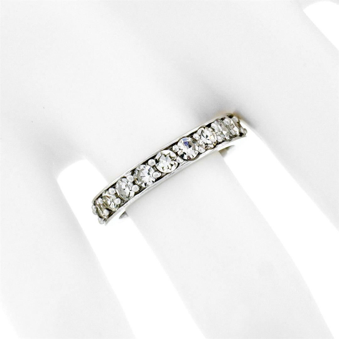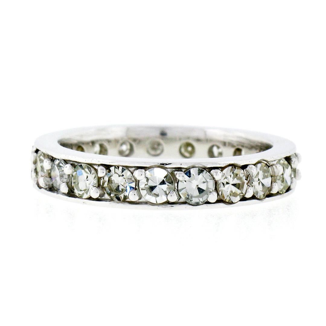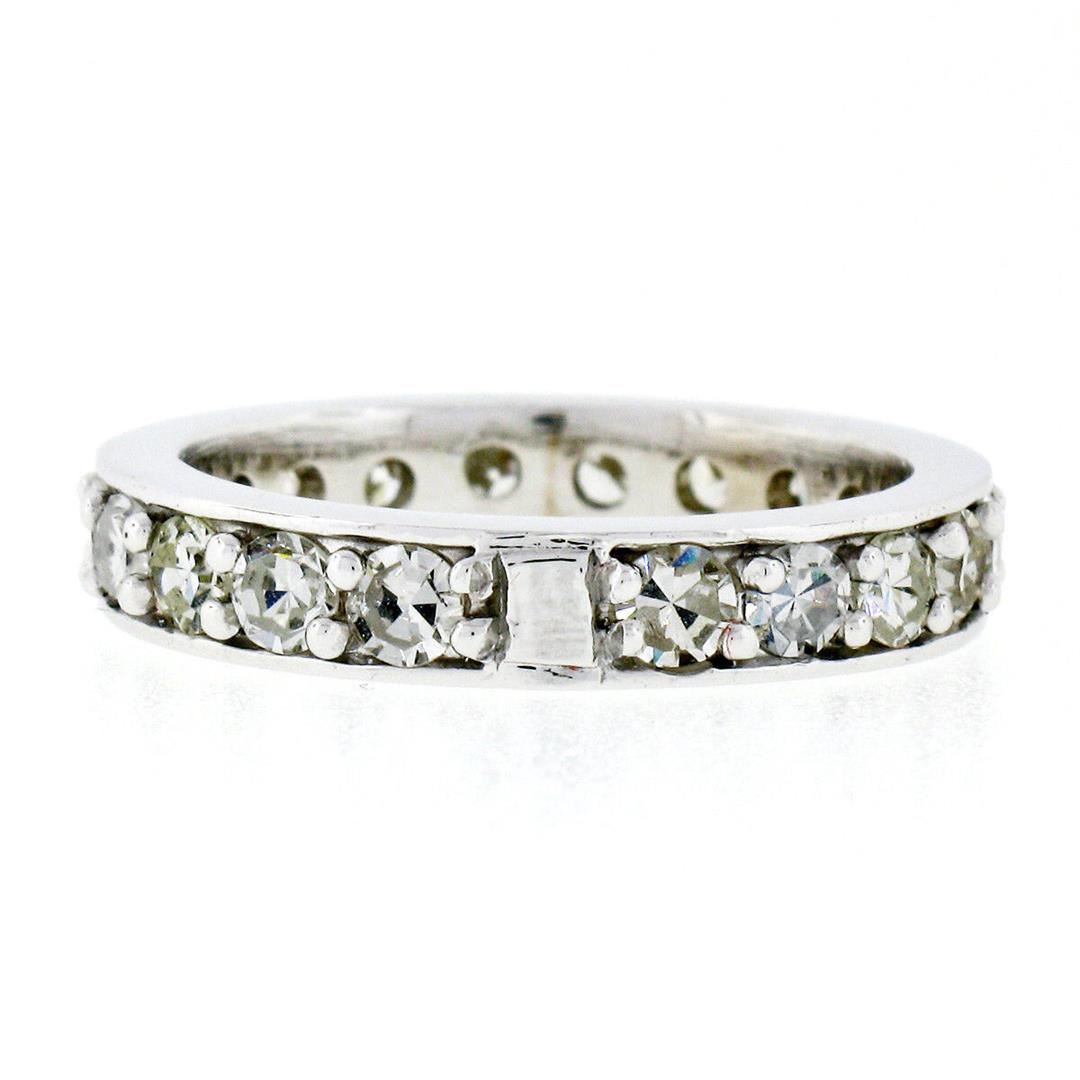 A vintage solid 14k white gold eternity band ring, with 20 old single cut natural diamonds (G/H- VS1/VS2; 1.57ctw). The ring is size 6.0, weighs a total of 4.02 grams, and measures 3.60mm wide.