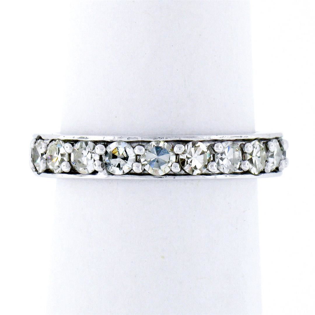 A vintage solid 14k white gold eternity band ring, with 20 old single cut natural diamonds (G/H- VS1/VS2; 1.57ctw). The ring is size 6.0, weighs a total of 4.02 grams, and measures 3.60mm wide.