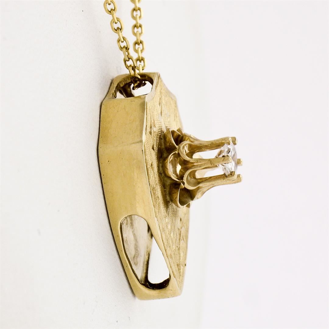 Vintage 14k Yellow Gold 0.40 ctw Diamond Hand Etched Shield Pendant Necklace