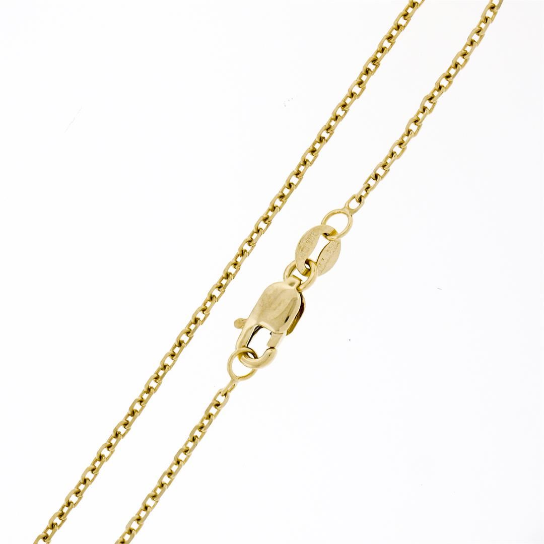 A vintage 14k yellow gold necklace featuring a hand-etched reversible shield pendant that is topped with a 0.40ct round transitional cut diamond (F - SI1) 6-prong set above a dual flower motif. 18 inch cable link chain, 7.76 grams total weight, pendant measures 12.15x9.50mm.