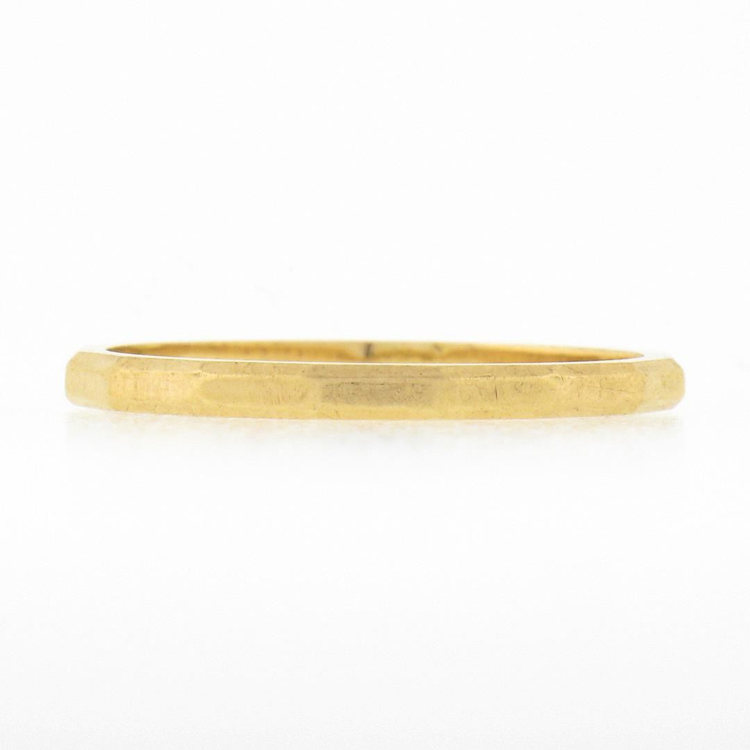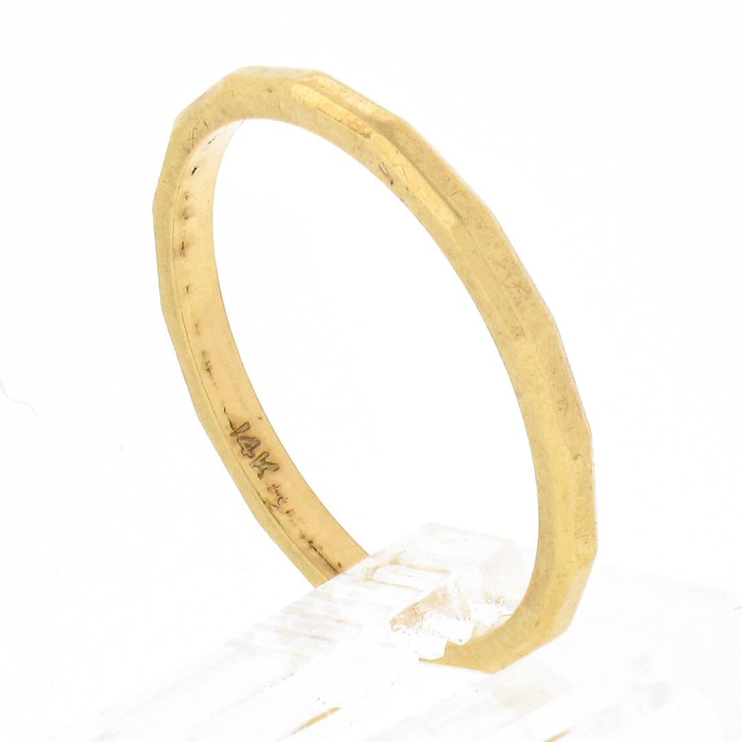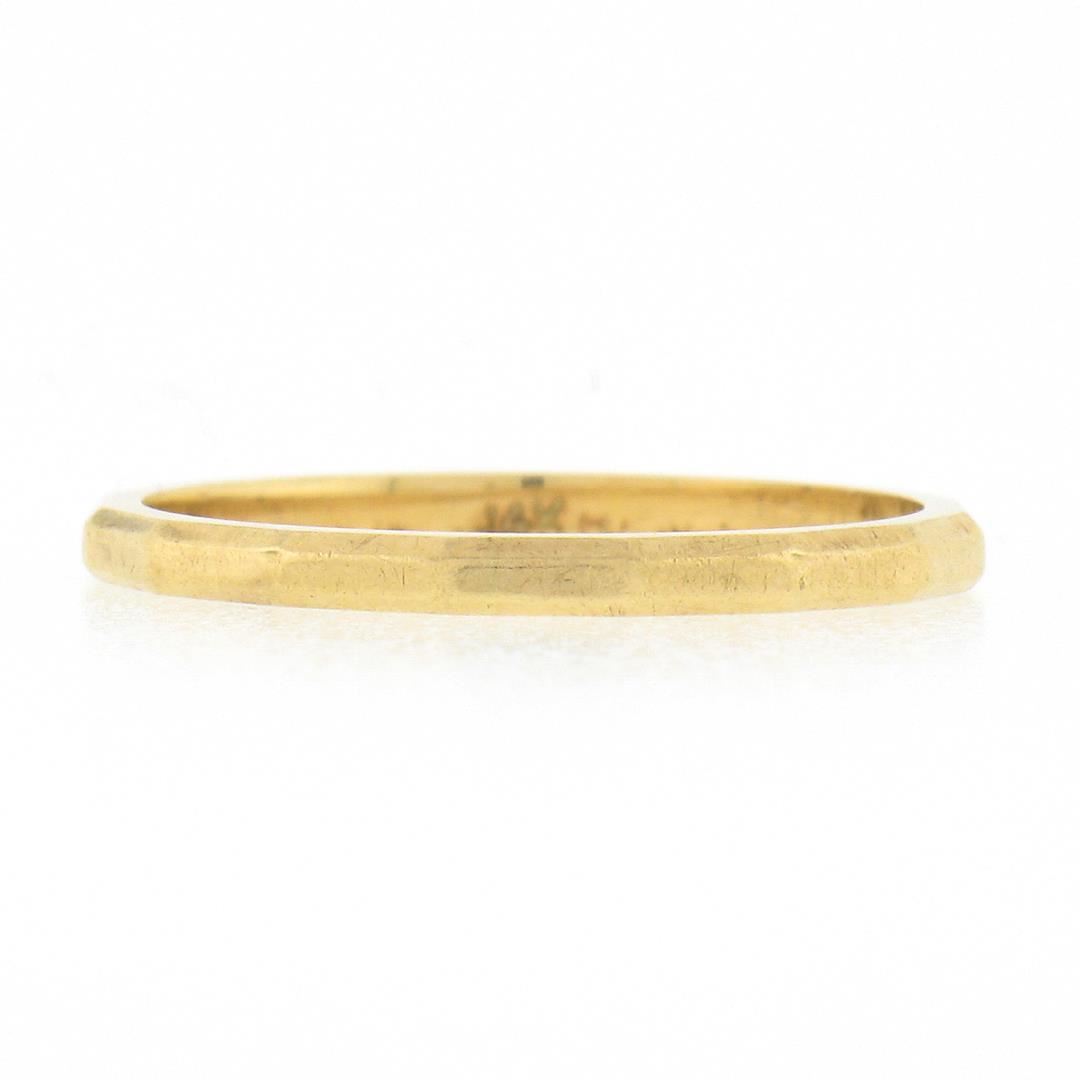 A vintage solid 14k yellow gold band ring. The ring is size 5.5, weighs a total of 1.28 grams, and measures 1.6mm wide.