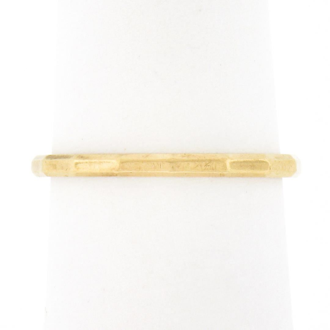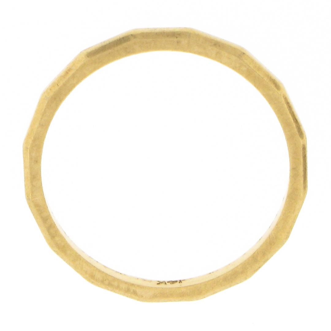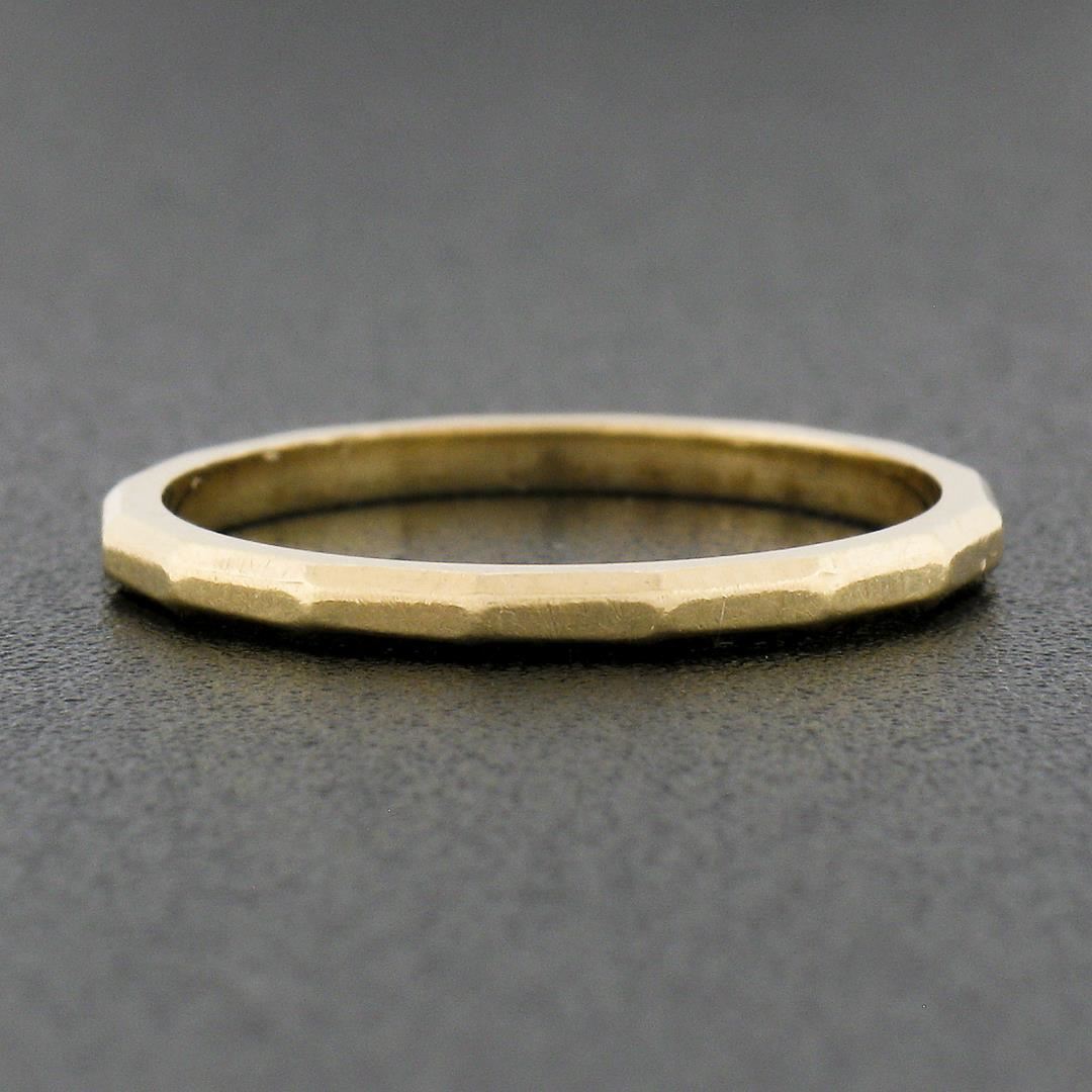 A vintage solid 14k yellow gold band ring. The ring is size 5.5, weighs a total of 1.28 grams, and measures 1.6mm wide.
