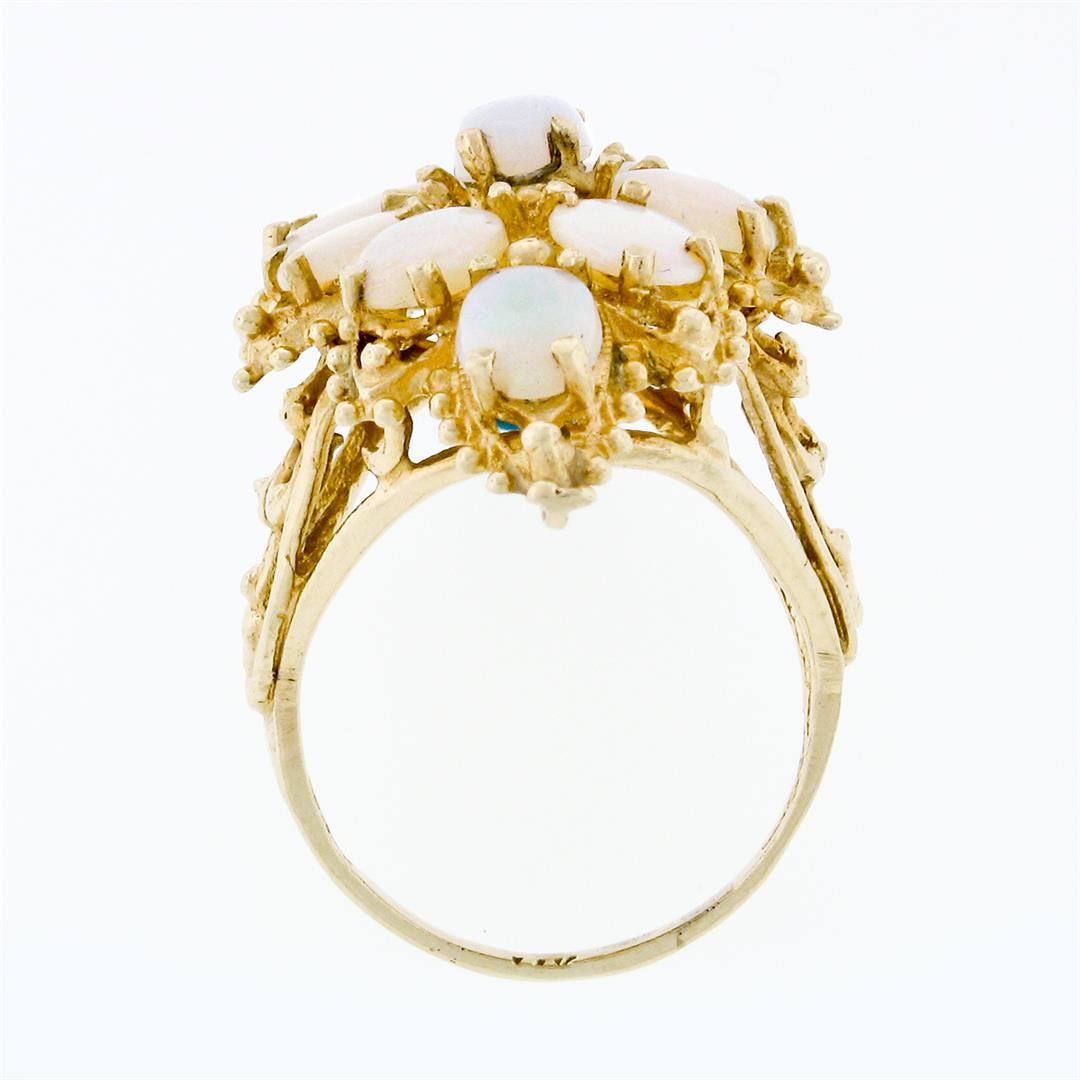 A vintage soldi 14k yellow gold cocktail ring, with 11 oval cabochon cut natural opal (7x5mm). The ring is size 8.5, weighs a total of 10.53 grams, and measures 40.45mm wide.