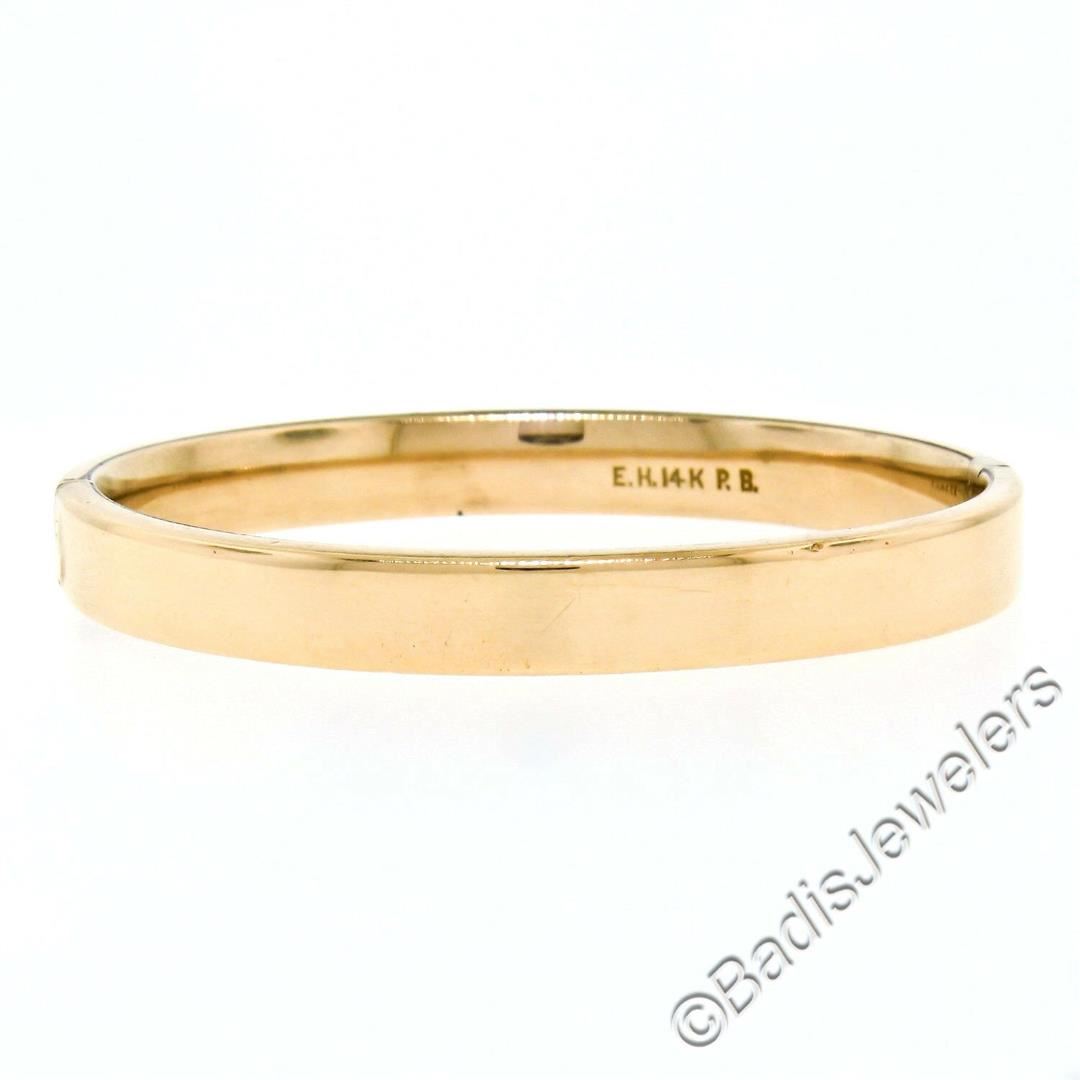 An excellent condition vintage 14kt rose gold baby bangle bracelet with fine etched patterns. It weighs a total of 6.4 grams and will fit up to a 5 inch wrist.