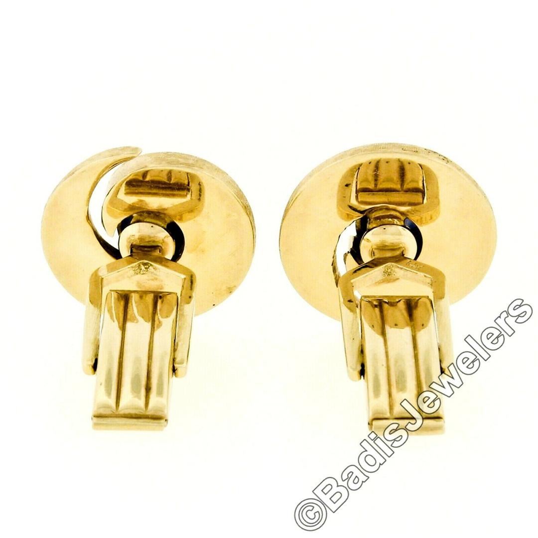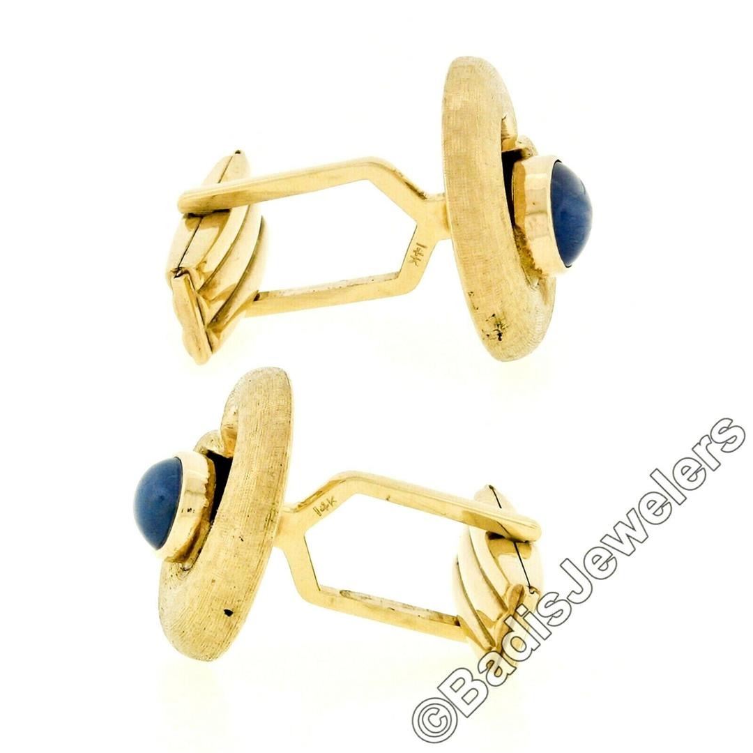 Vintage 14kt Yellow Gold Oval Blue Star Sapphire Florentine Swirl Cuff Links