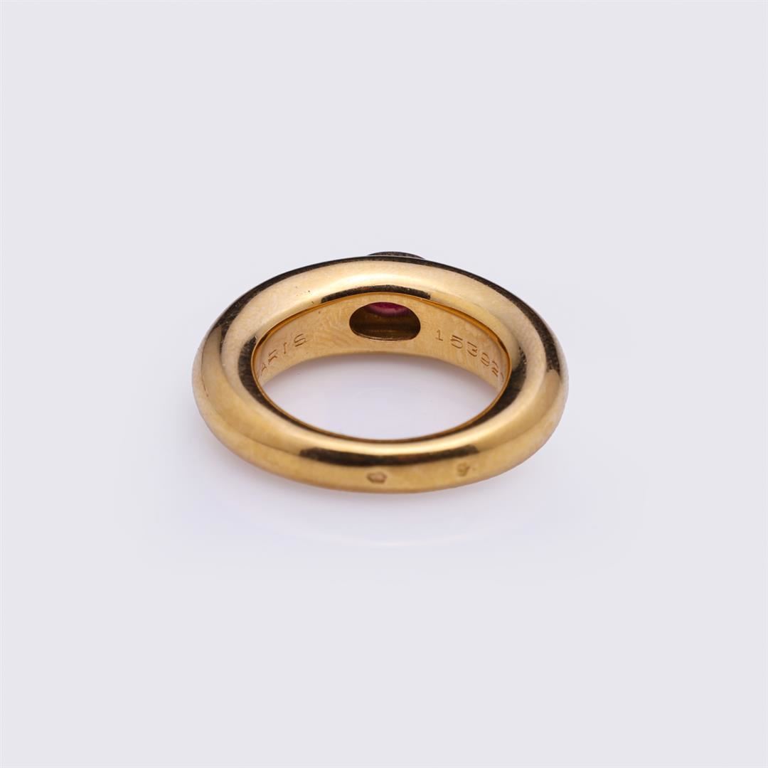 Vintage 18K Gold & Amethyst Ring by Chaumet. Containing one bezel set cabochon pink tourmaline weighing approximately 0.50 cts. Total weight is 9.5 gm. Estimated retail value $3,200.