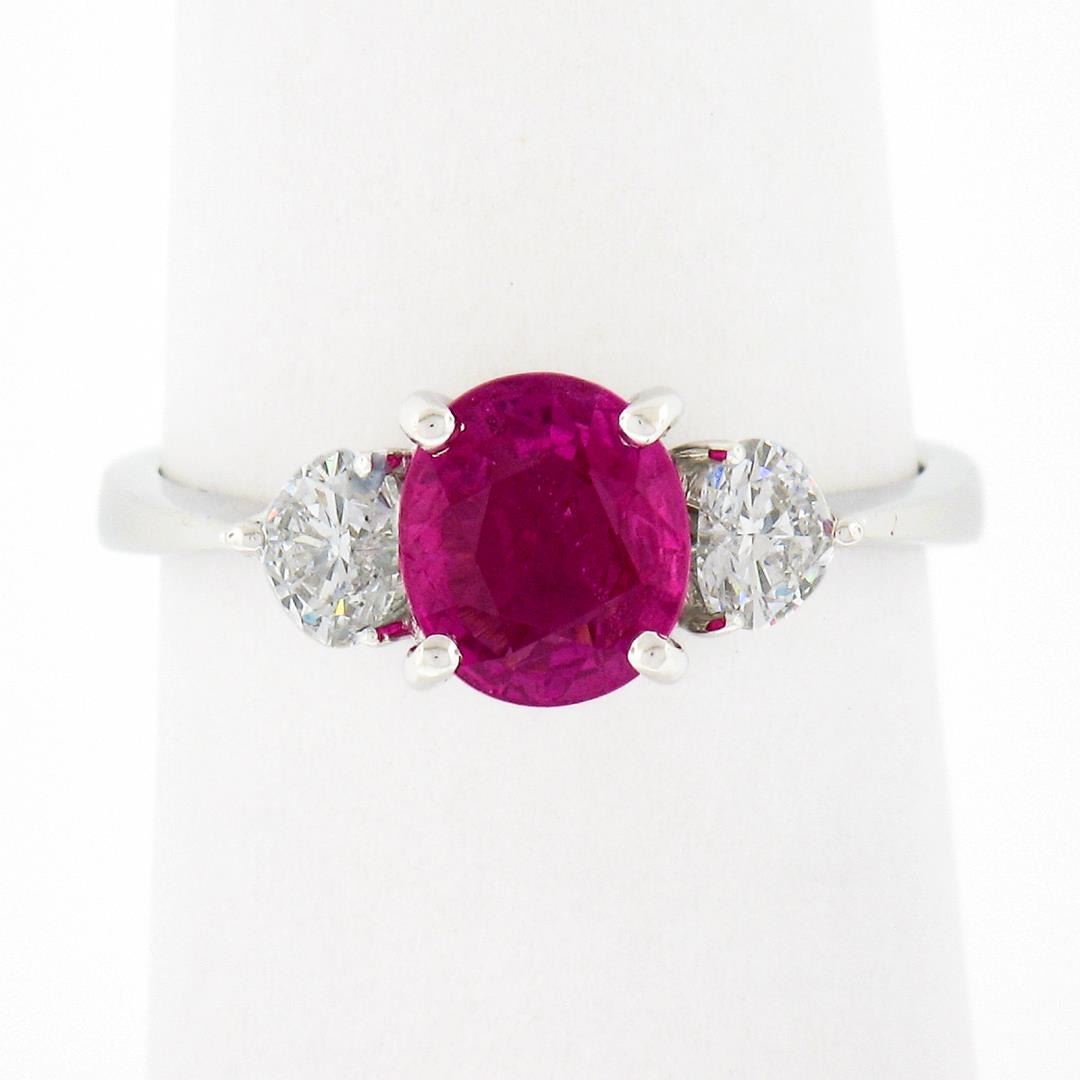 A vintage solid 18k white gold ring, with 1 GIA graded oval cut natural pink sapphire (1.20ct), and 2 heart brilliant cut natural diamonds (E/F - VS1/VS2 ; 0.36ctw). The ring is size 6.0, weighs a total of 3.53 grams, and measures 6.85mm wide. Comes with all original relevant certifications.