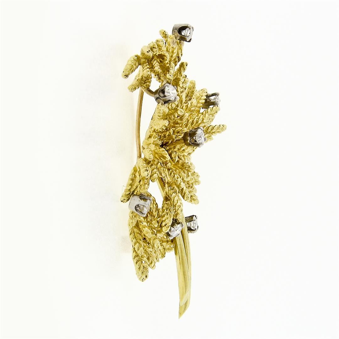 A vintage solid 18k yellow & white gold brooch, with 7 round brilliant cut natural diamonds (F/G - VS1/VS2 ; 0.65ctw). Measures 54.7x43.1mm and weighs a total of 26.22 grams.