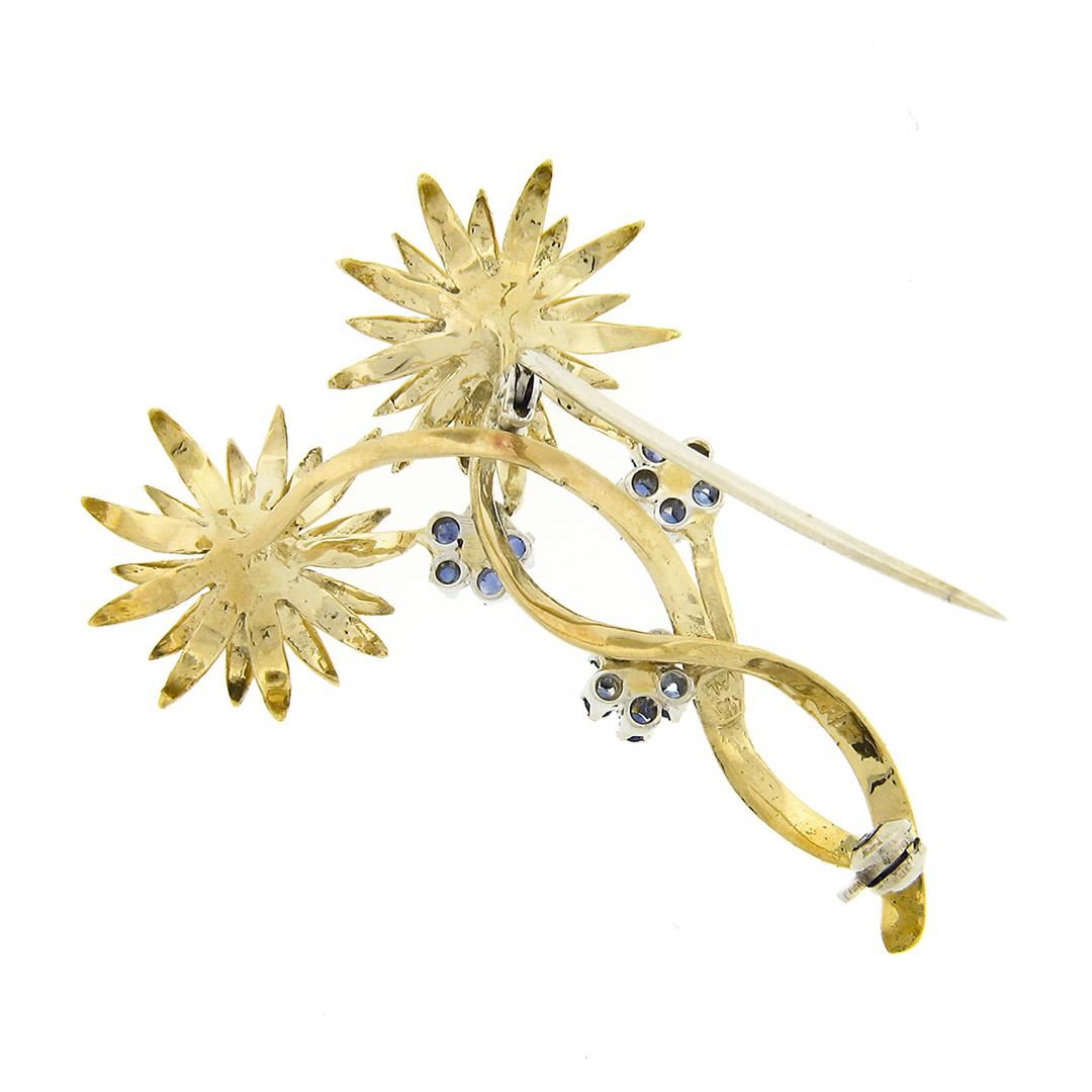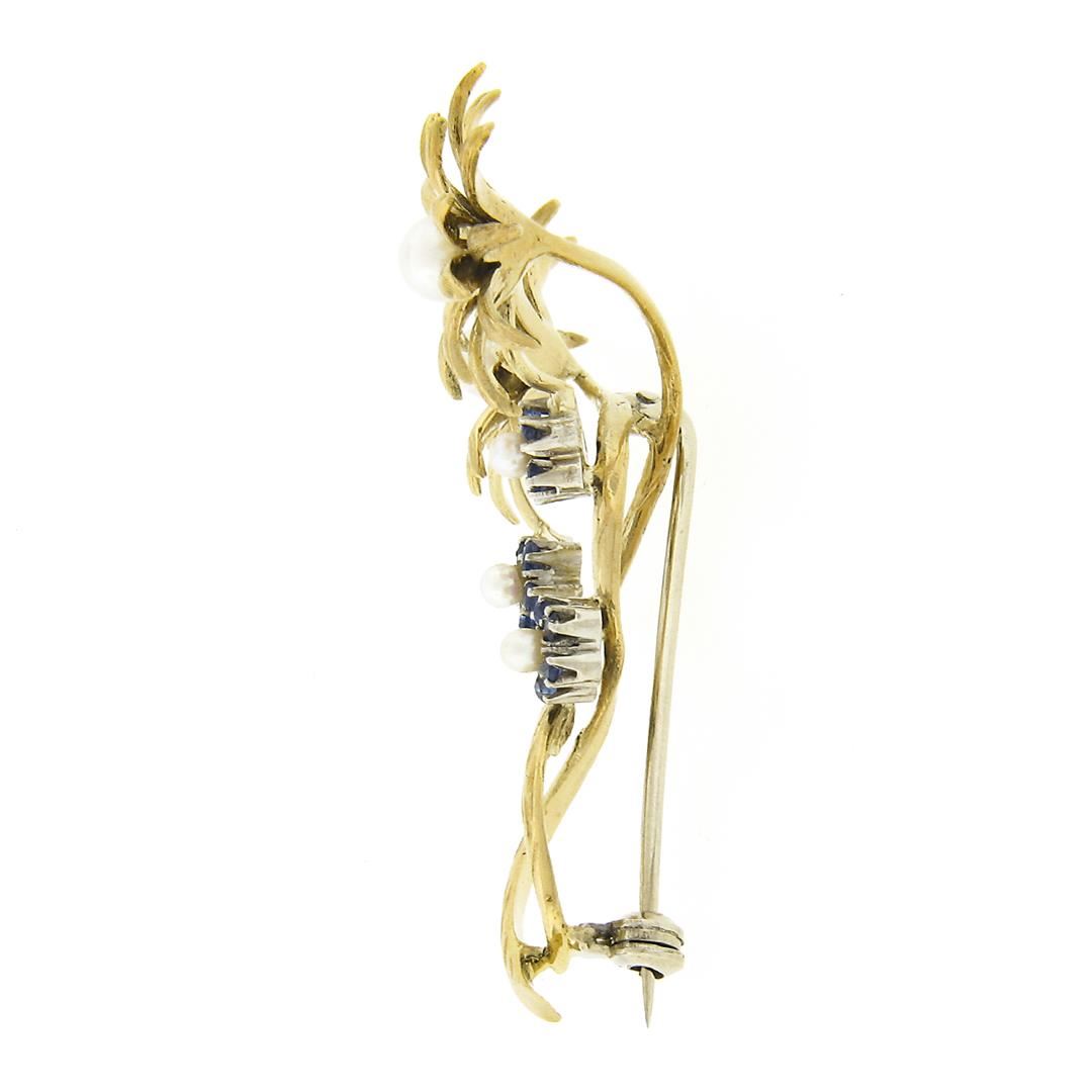 Vintage 18k Gold 0.30 ctw Sapphire Pearl Flower Burst Bundle Textured Brooch Pin