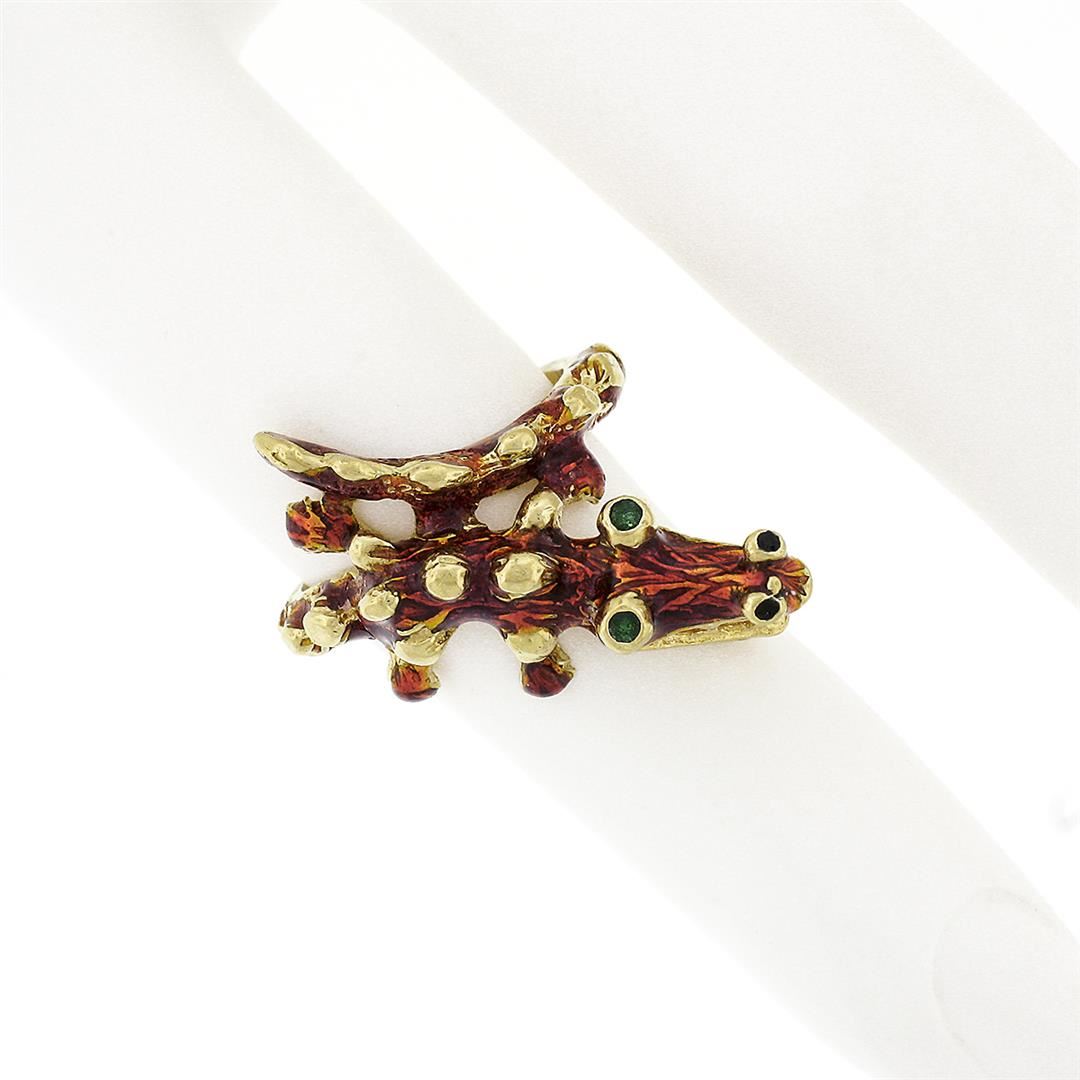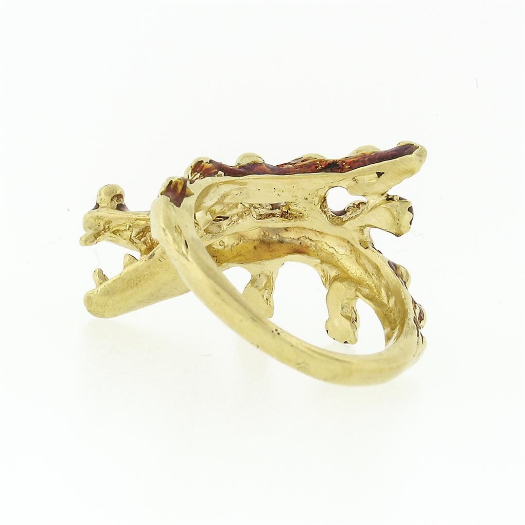 A vintage solid 18k yellow gold dragon wrap band ring, with enamel work. The ring is size 3.0, weighs a total of 5.42 grams, and measures 19.45mm wide.