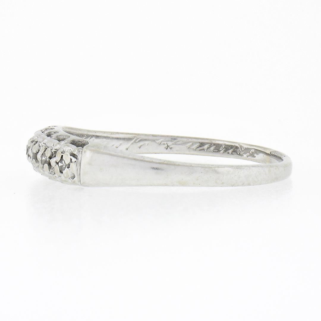 A vintage solid 18k white gold band ring. with 5 old single cut natural diamonds (H/I - SI2/I1 ; 0.05ctw). The ring is size 7.0, weighs a total of 2.09 grams, and measures 3.9mm wide.