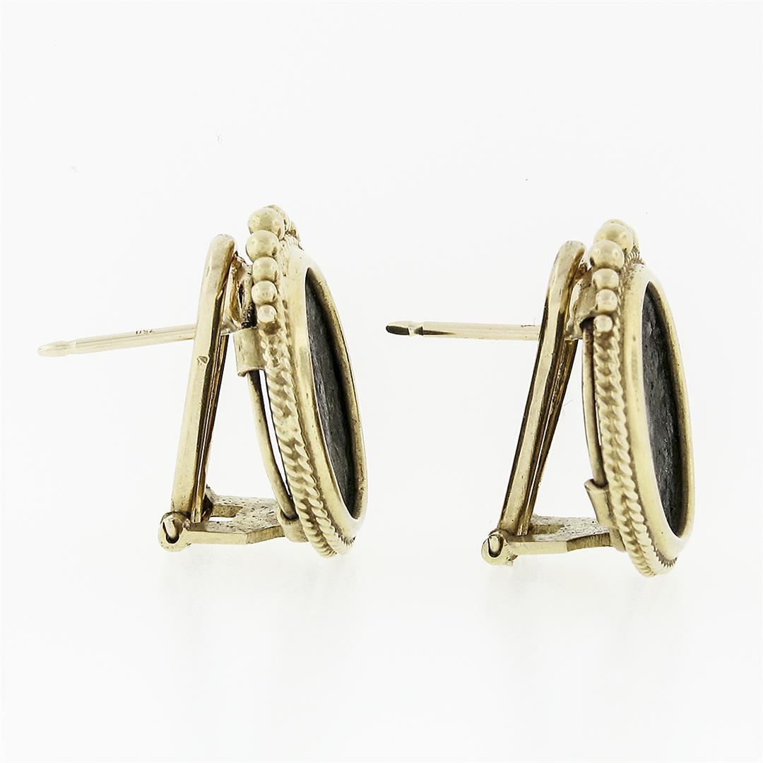A vintage solid 18k yellow gold earrings, with 2 round shape ancient coins. The earrings measure approximately 20.24x18.34mm and weigh a total of 14.43 grams.