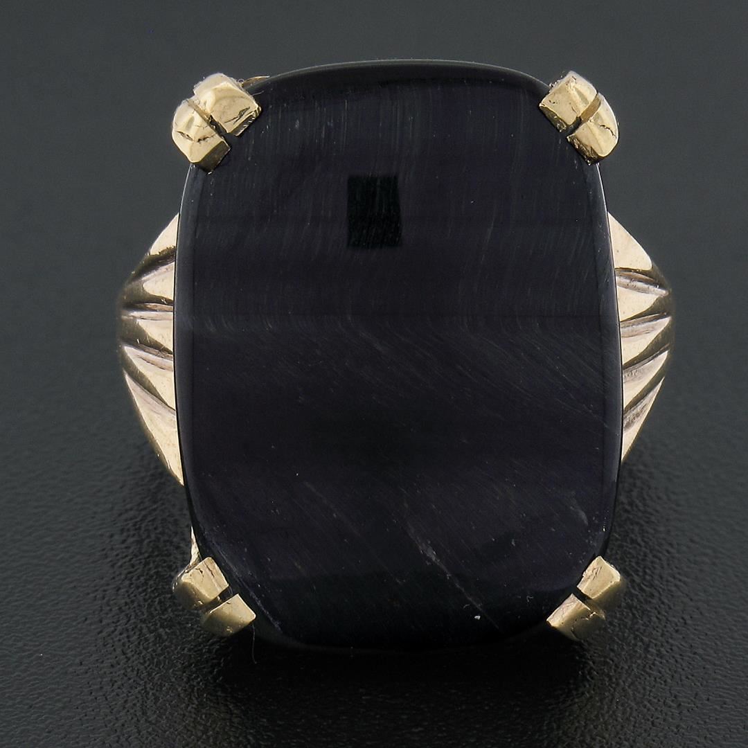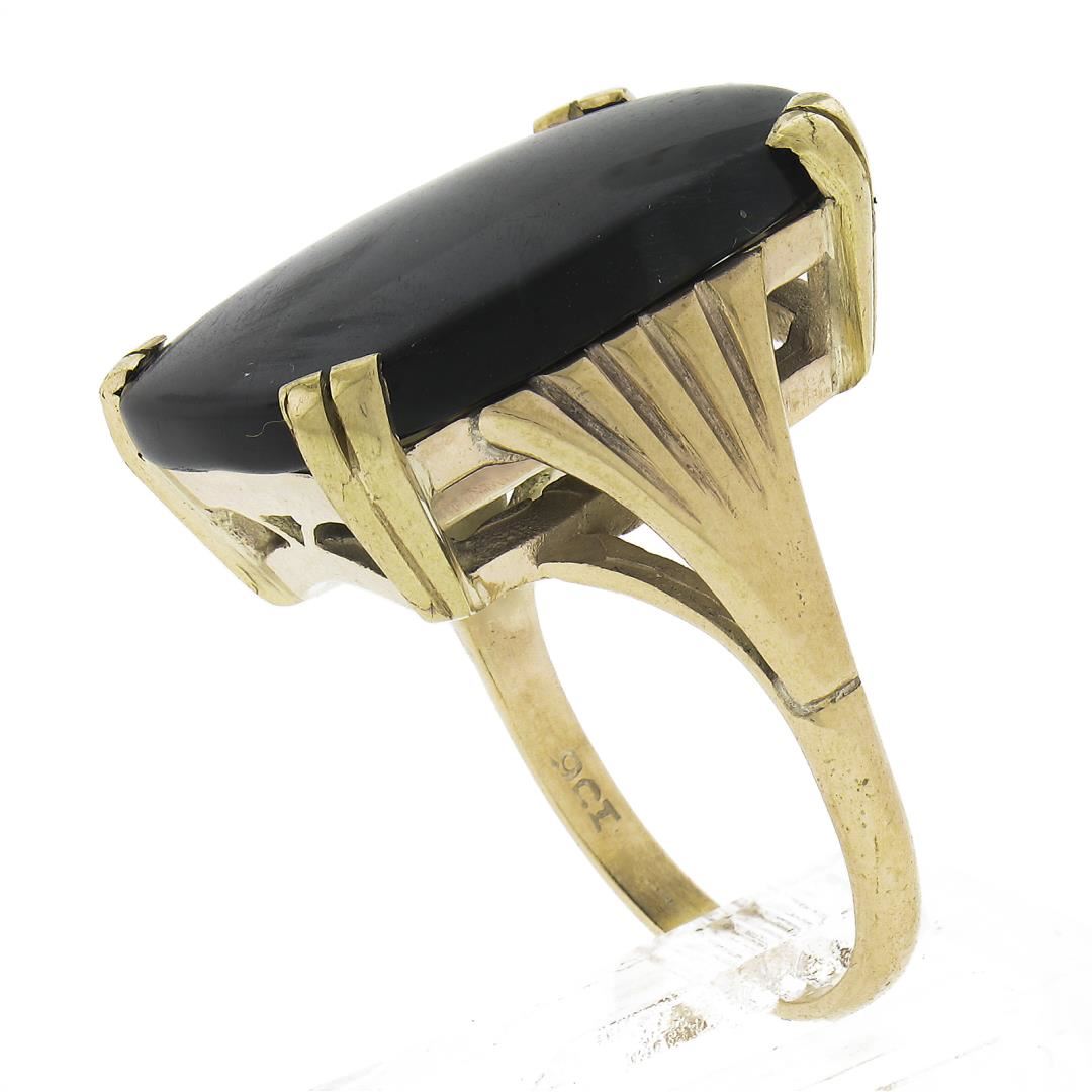 Vintage 9ct Yellow Gold 21.3x15.8mm Flat Cushion Black Agate Solitaire Ring