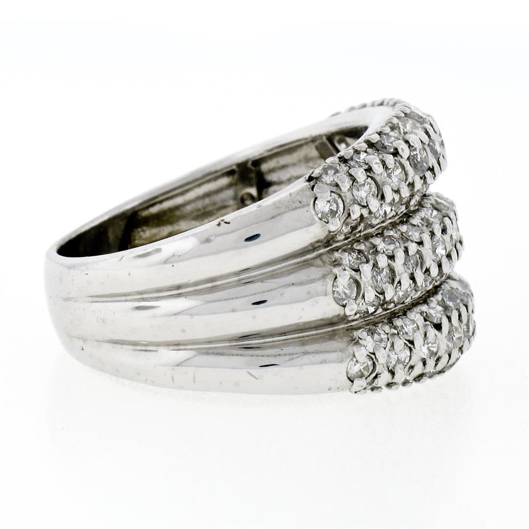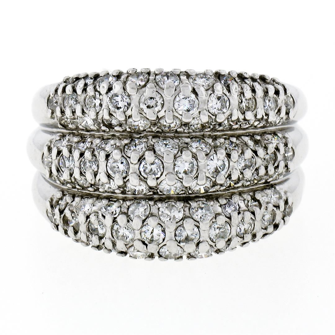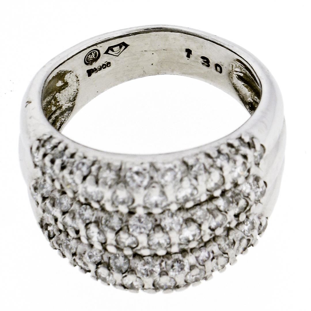 A vintage solid platinum wide band ring, with 84 old transitional cut natural diamonds (G/H- VS2/SI1; 1.30ctw). The ring is size 6.0, weighs a total of 10.50 grams, and measures 14.0mm wide.