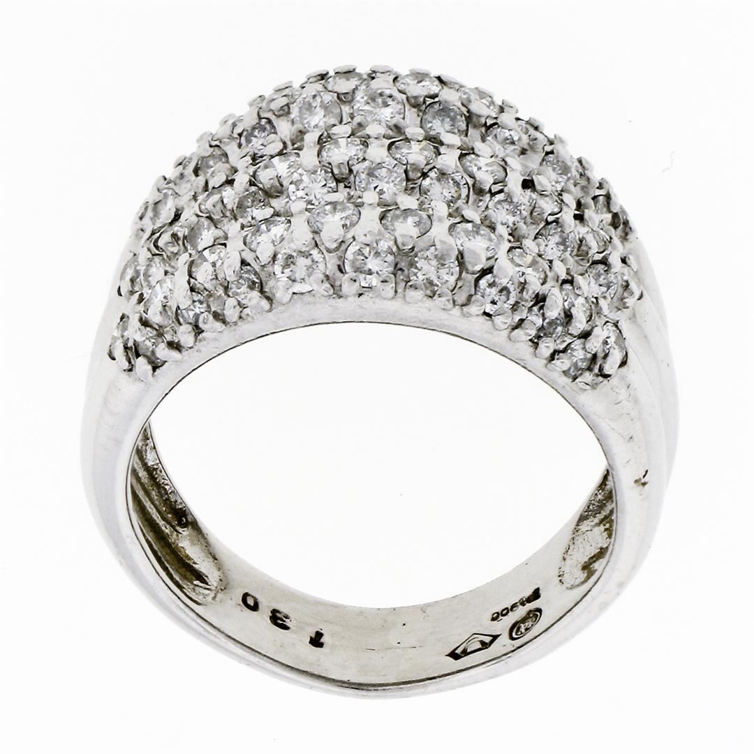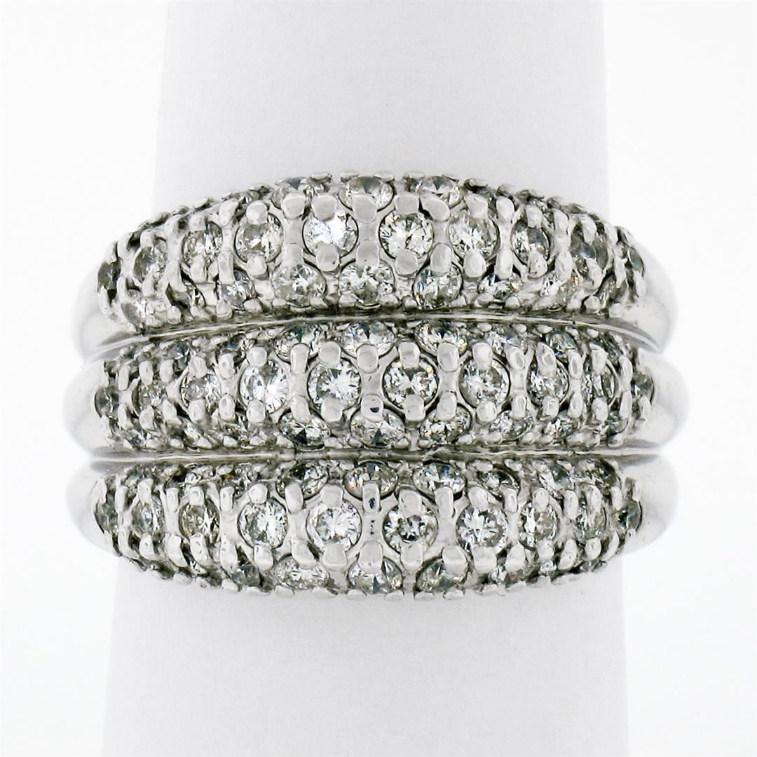 A vintage solid platinum wide band ring, with 84 old transitional cut natural diamonds (G/H- VS2/SI1; 1.30ctw). The ring is size 6.0, weighs a total of 10.50 grams, and measures 14.0mm wide.