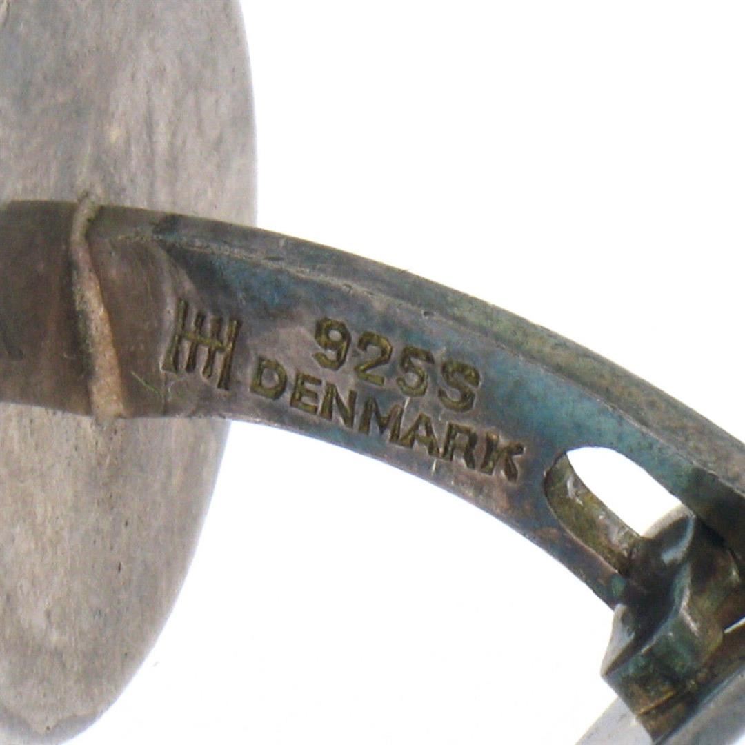 Vintage .925 Sterling Silver 1950s Hans Gustav Hansen Black Enamel Cuff Links. Please see photos and description for all available information. A vintage solid silver cufflinks by Hans Gustav Hansen, with black enamel work These cuff links have a swivel design, weigh a total of 20.60 grams, and the front panels measure 18.70x21.52mm.