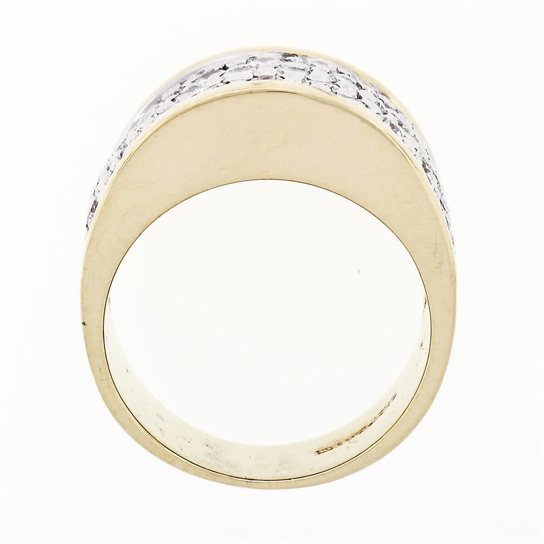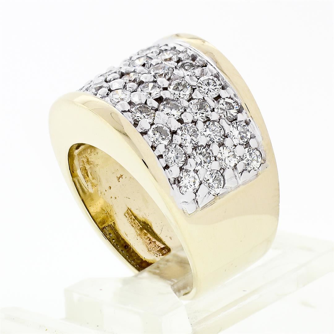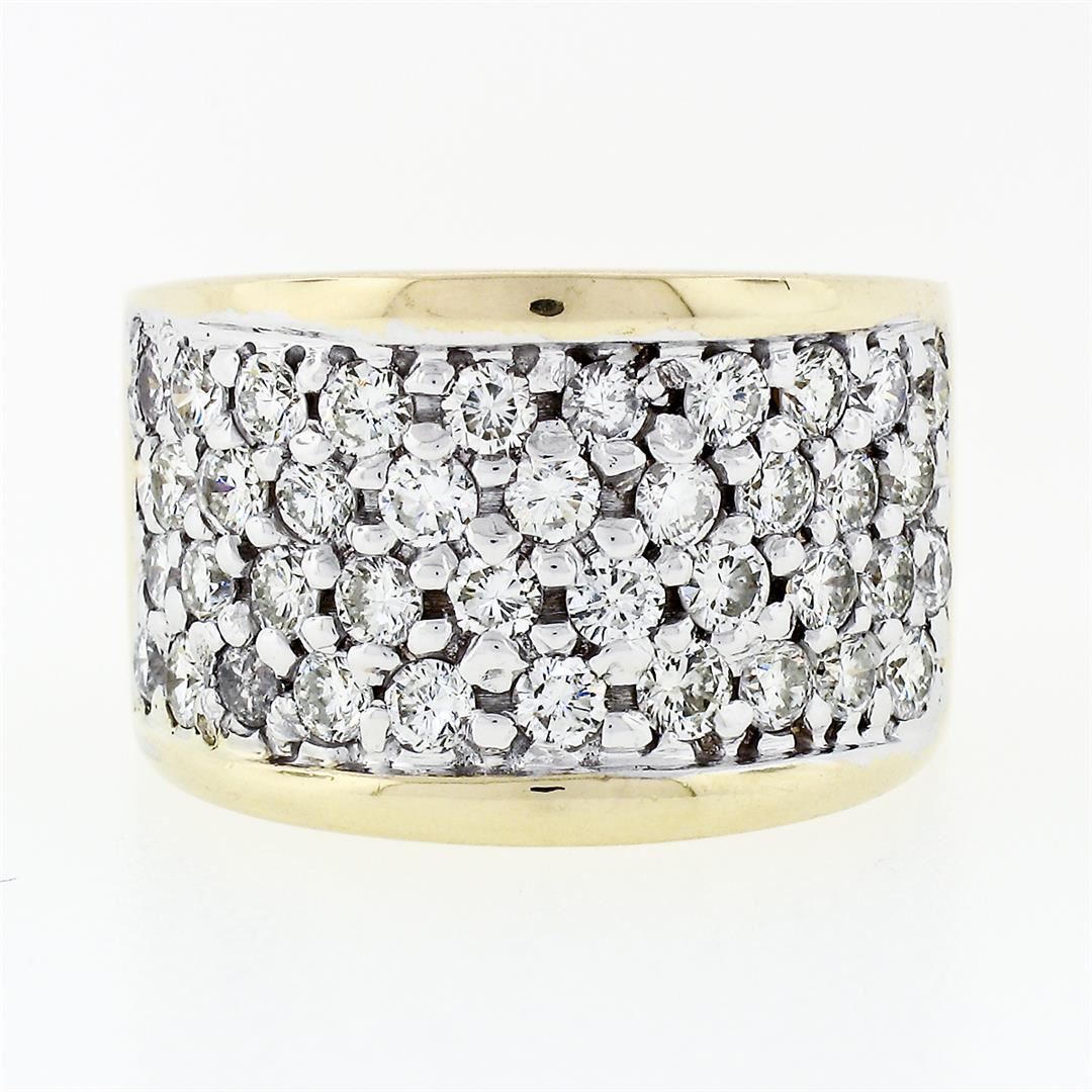 A vintage solid platinum & 14k yellow gold band ring, with 39 round brilliant cut natural brilliant cut (G/H - VS2-SI1 ; 1.56ctw). The ring is size 6.0, weighs a total of 12.07 grams, and measures 13.2mm wide.