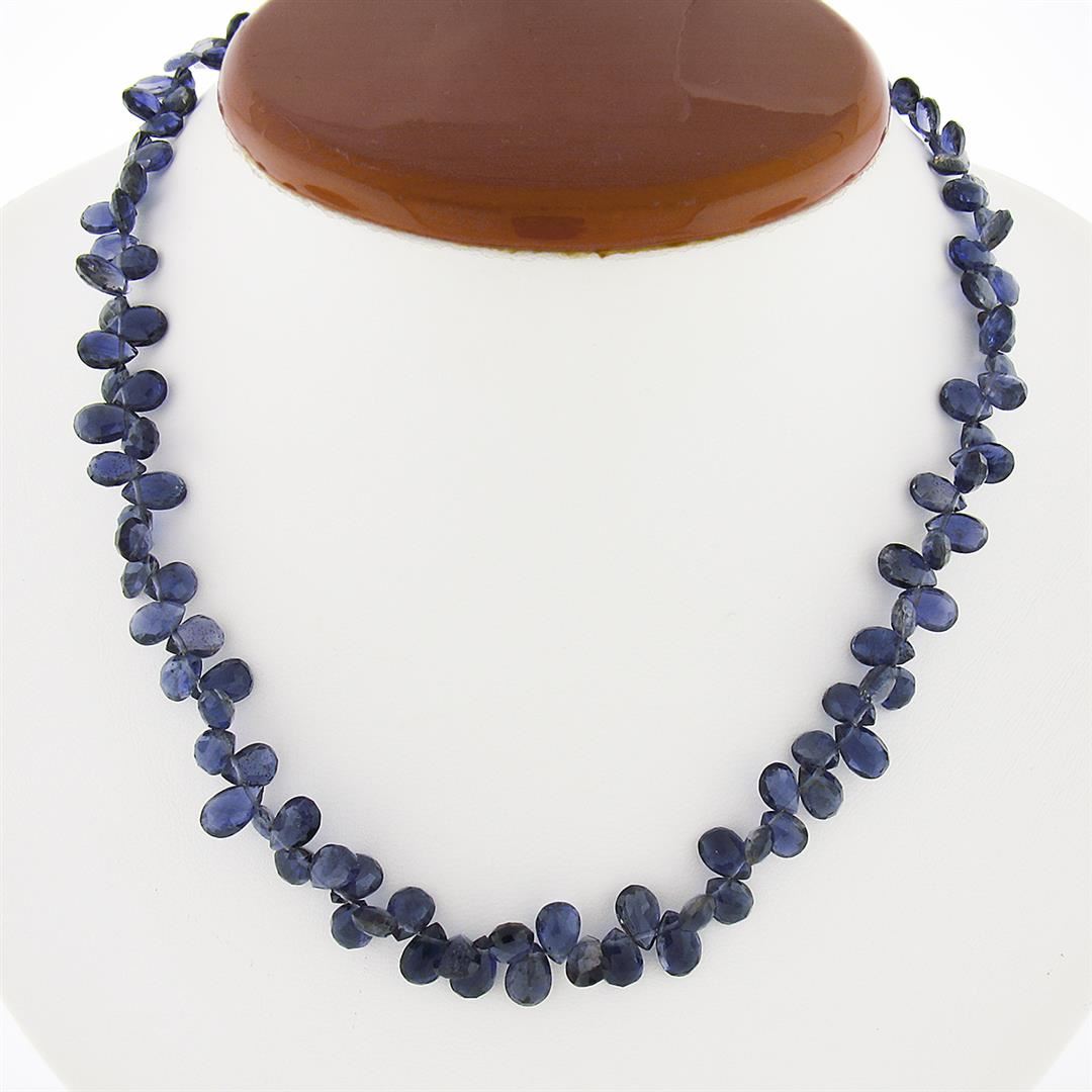A vintage necklace with Gia certified tear drop briolette lolite. and with solid 18k yellow gold clasp. 16 inch strand link chain, 19.66 grams total weight. Comes with all original relevant certifications.