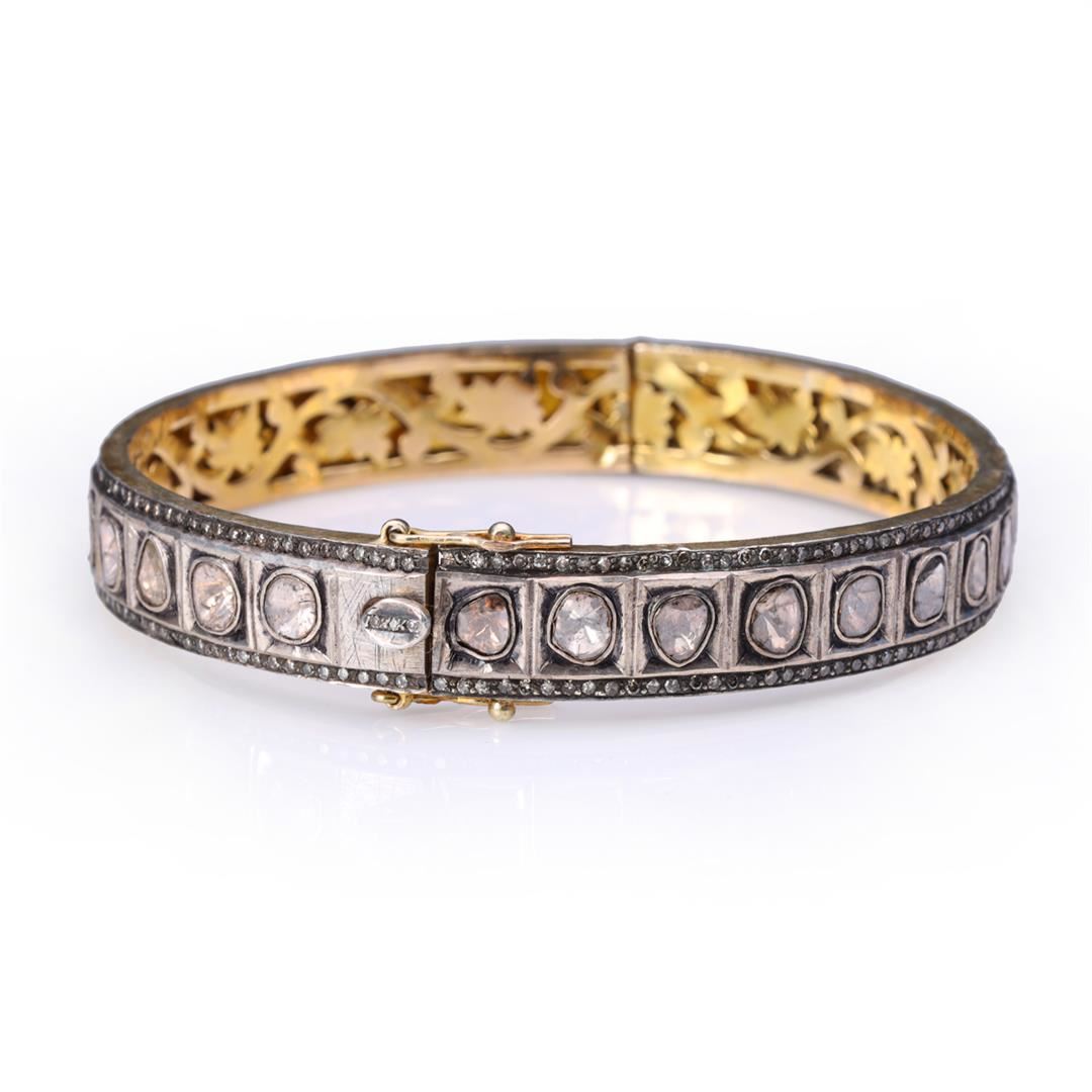Vintage Indian Gold Topped Silver Polki & Diamond Slice Bangle. Total weight of 33.2 gm. Estimated retail value $800.