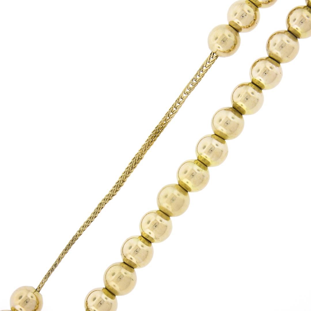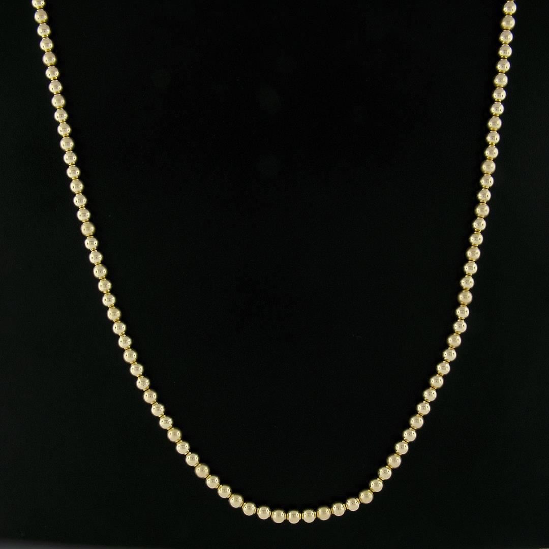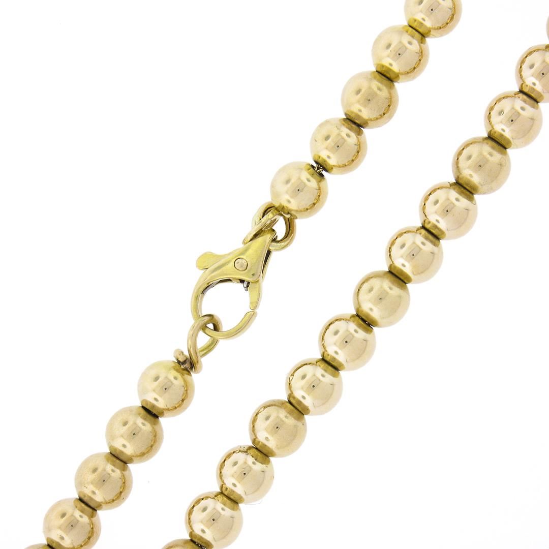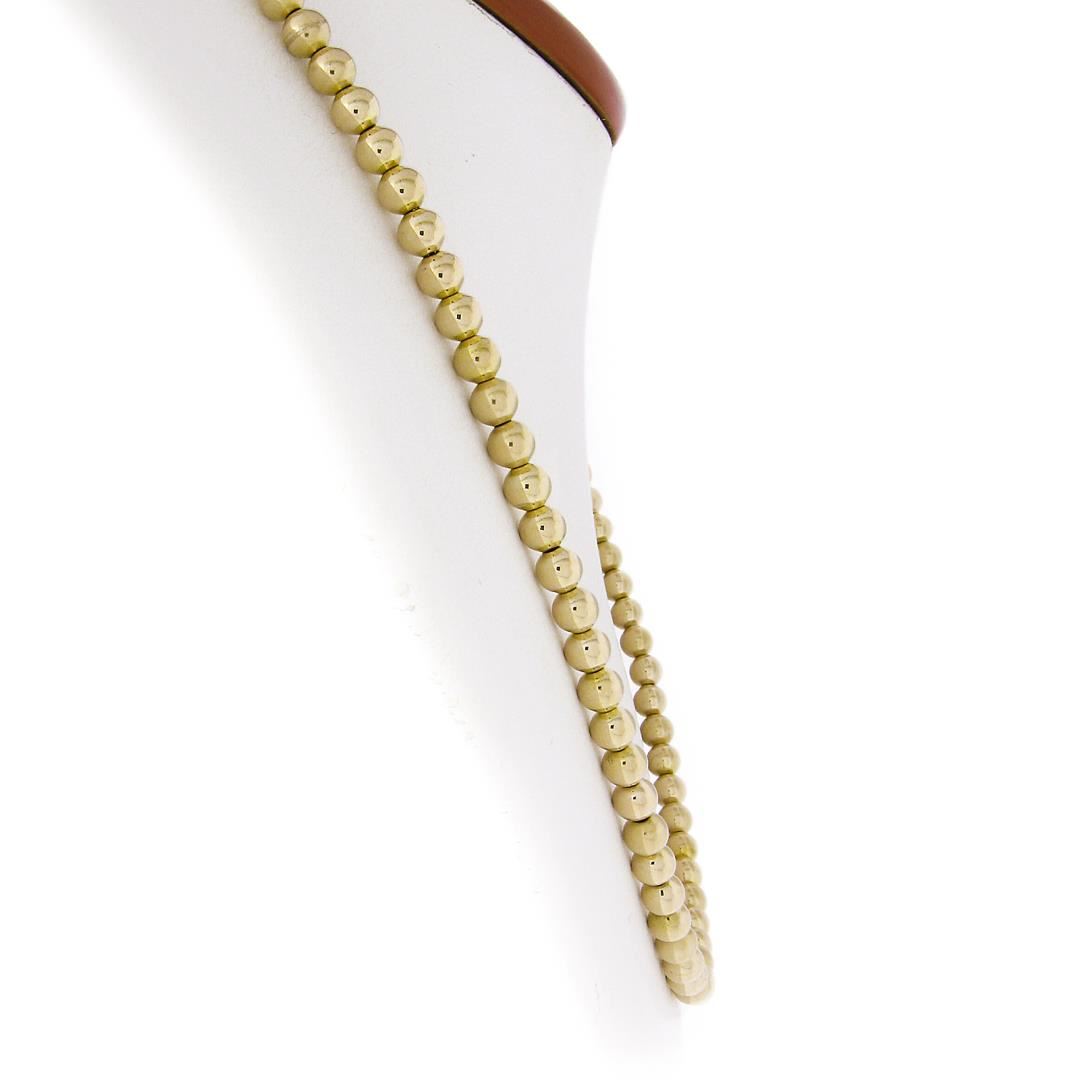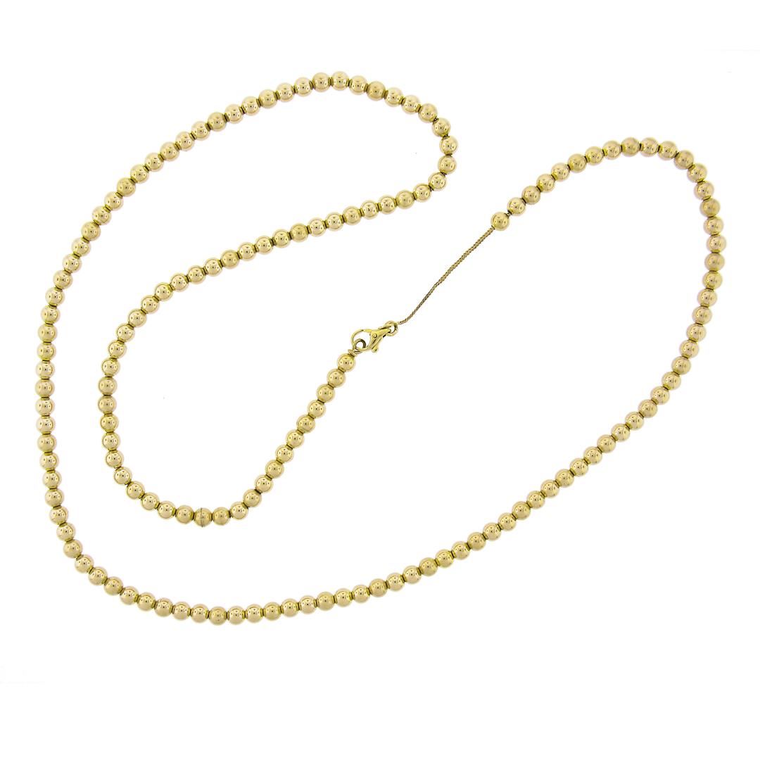 A vintage solid 14k yellow gold italian beads necklace. It weighs a total of 53.91 grams, measures 5.15mm wide, and measures 31 inches in length.