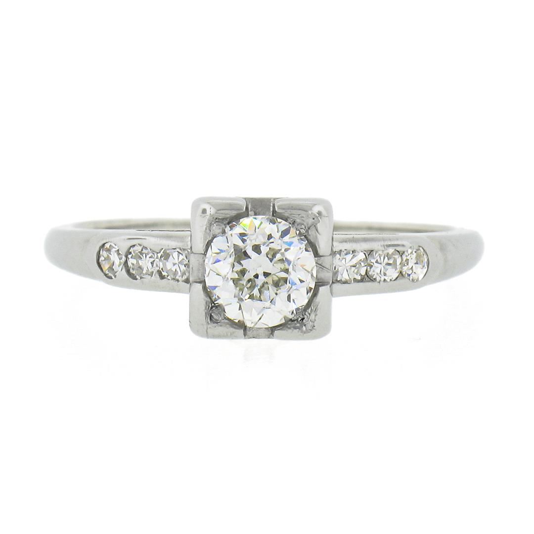 Vintage Jabel 18k Gold GIA 0.57 ctw European Diamond w/ Accents Engagement Ring