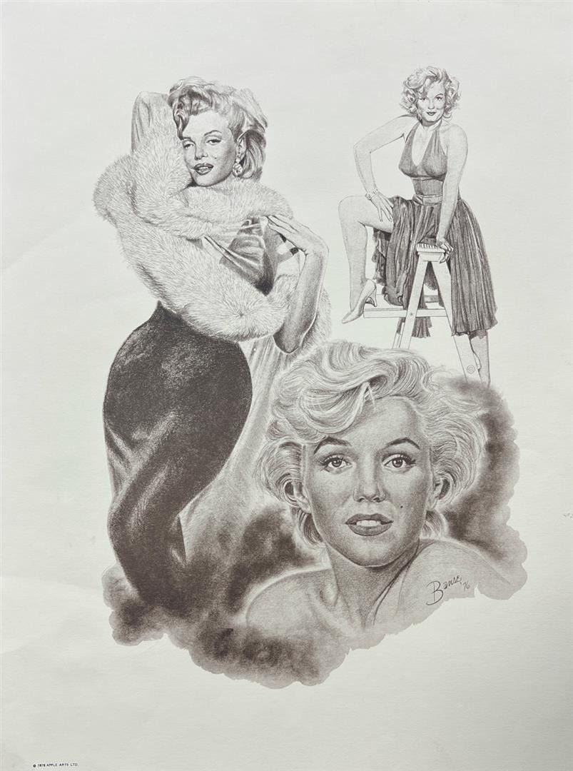 Vintage Marilyn Monroe by Banse, Glen. Open Plate Signed Lithograph. Stain on Border. Dimensions: 26 x 20. As Is.