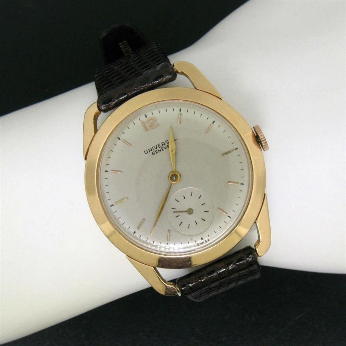 A vintage Universal Geneve men's wrist watch with a 36mm solid 18kt rose gold case. Features a Swiss-made, hand winding, 17 jewel, caliber 262 movement; 100% working.